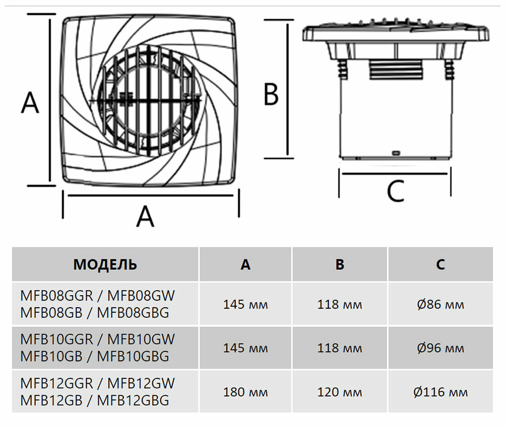 | Монтаж накладного вентилятора | настенный, потолочный |