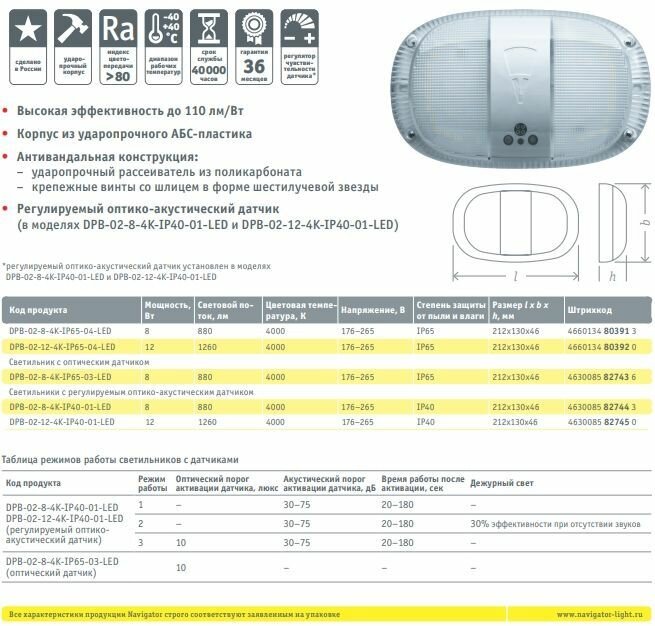 На сегодняшний день товар «Светильник светодиодный Navigator 80 392 IP65 12Вт 176–265В 4000К 1260лм 212х130х46мм (80392) DPB-02-12-4K-IP65-04-LED Антей» можно купить с кешбеком в 1 магазине: Яндекс.Маркет