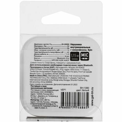 Наушники предназначены для прослушивания музыки и ведения разговоров. Они могут использоваться со смартфонами и планшетами с разъемом 8pin, оснащены кнопками для управления вызовом и воспроизведением.