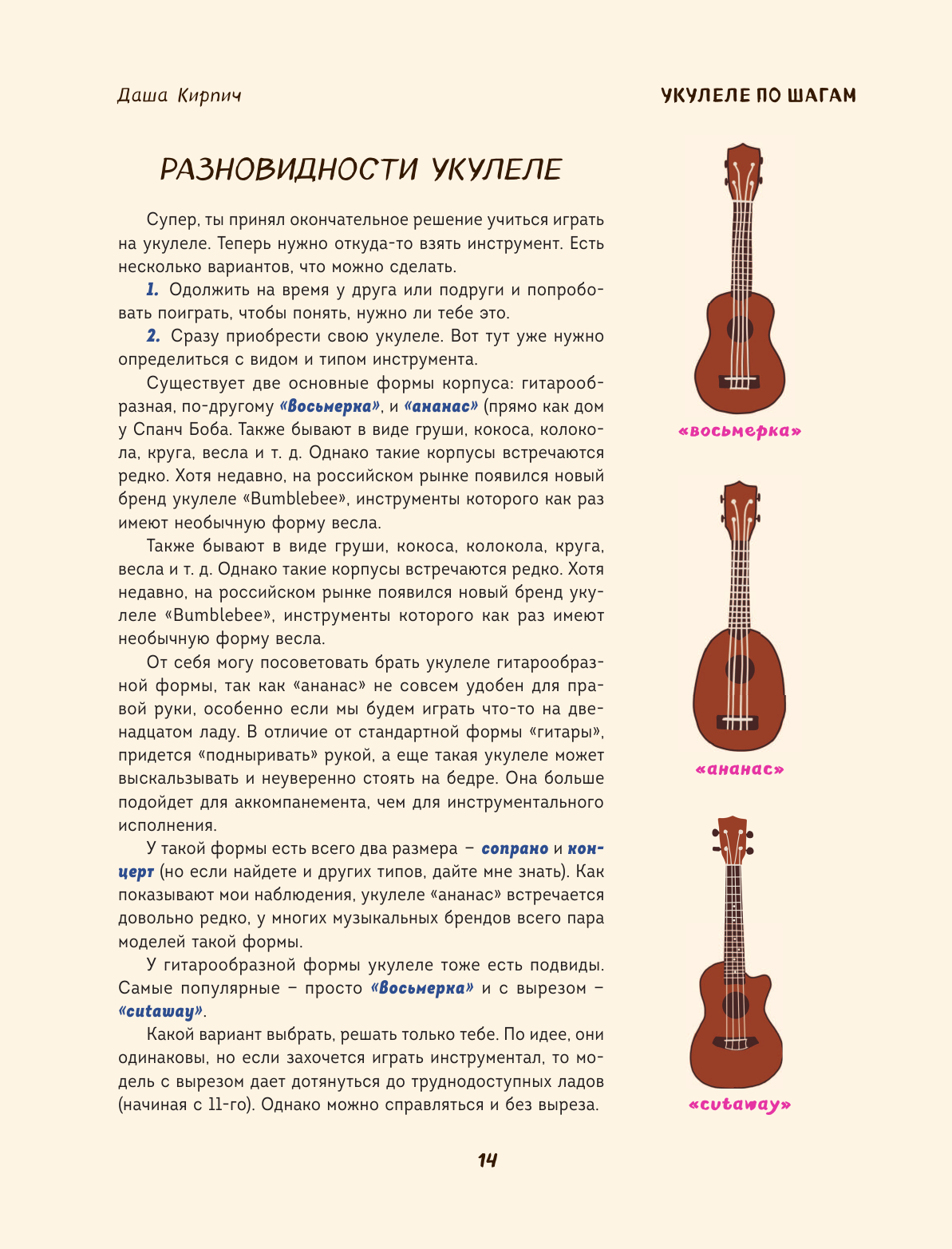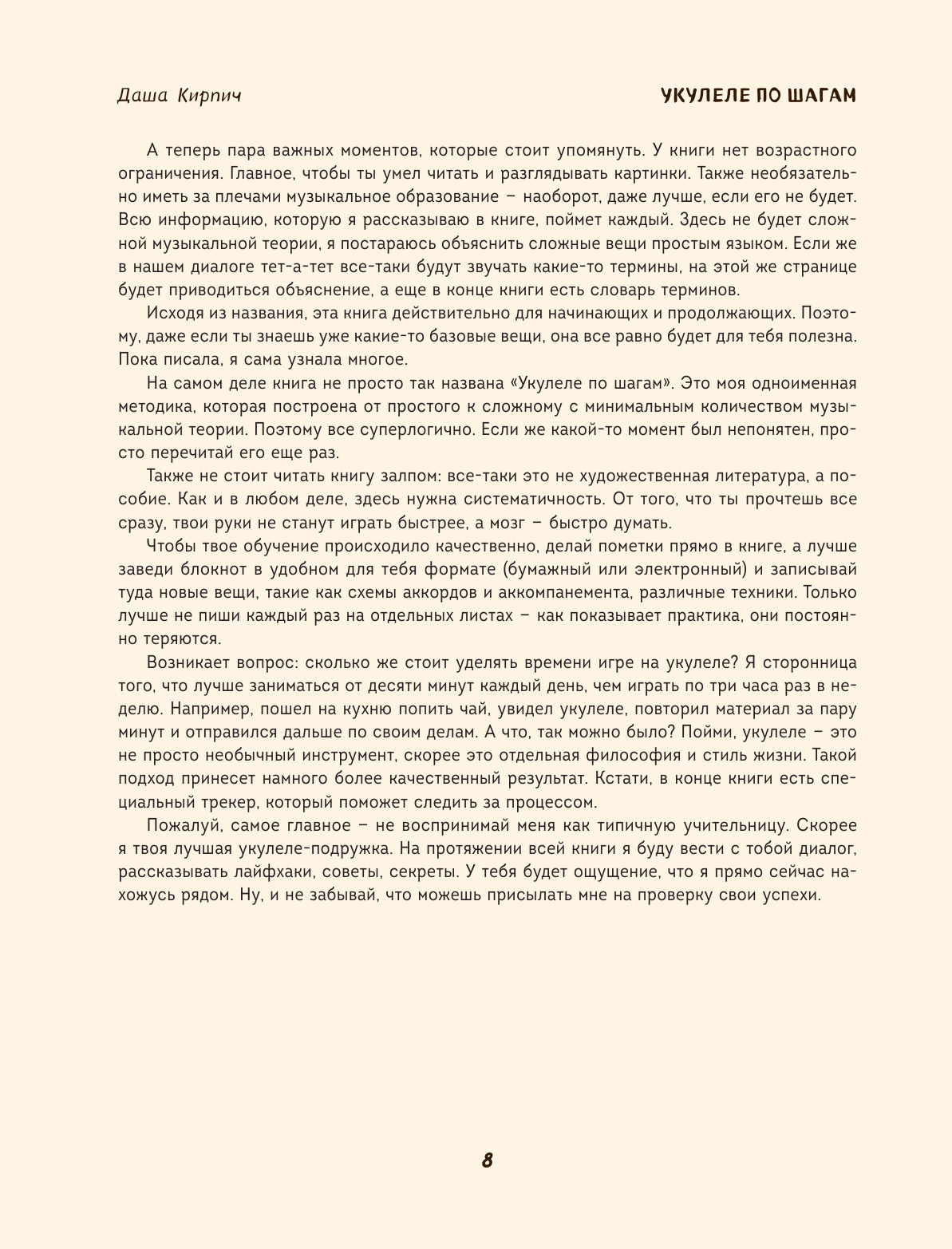 Большинство учебников по укулеле написаны сухим, устаревшим языком, мне же захотелось создать красочную и интерактивную книгу с аудиопримерами, видео и обратной связью! И теперь она перед вами.