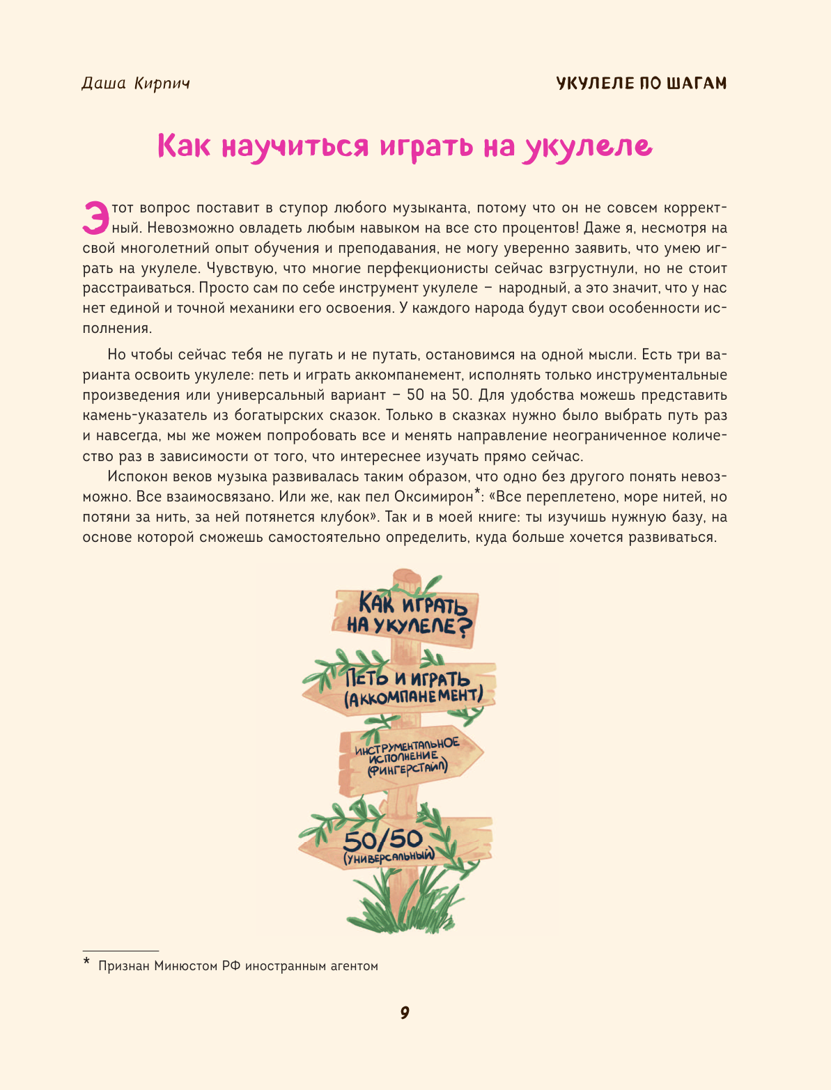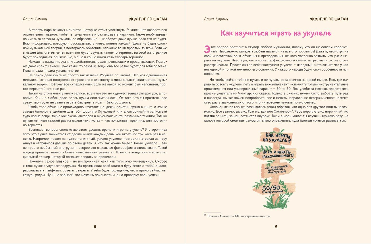Здесь не будет сложной музыкальной теории, я постараюсь объяснить сложные вещи простым языком. Чтобы твое обучение происходило качественно, делай пометки прямо в книге, а лучше заведи блокнот в удобном для тебя формате и записывай туда новые вещи, такие как: схемы аккордов и аккомпанемента, различные техники. На протяжении всей книги я буду вести с тобой диалог, рассказывать лайфхаки, советы, секреты. У тебя будет ощущение, что я прямо сейчас нахожусь рядом. Ну и не забывай, что можешь присылать мне на проверку свои успехи — видео можно скинуть в любую мою соцсеть, я всё посмотрю!