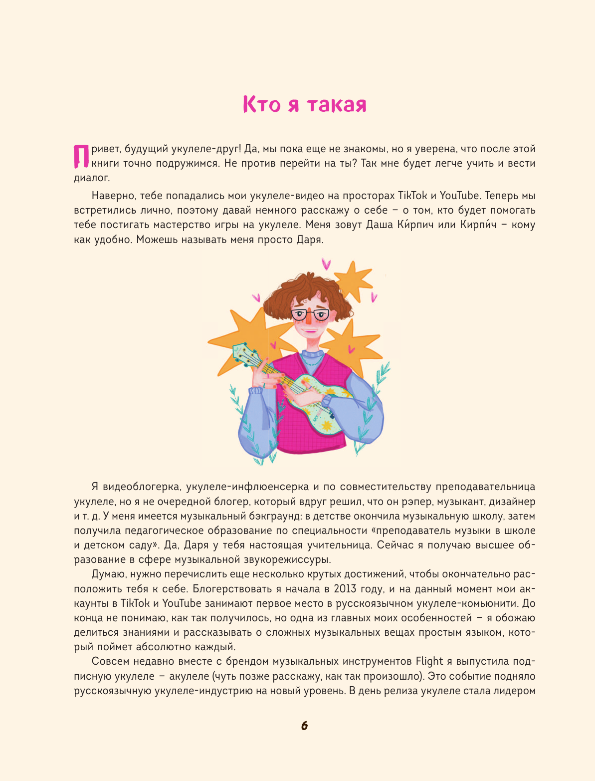 Привет! Меня зовут Даша, мне 23 года. Живу в Питере, коллекционирую свинку Пеппу и играю на укулеле. Я дипломированная преподавательница музыки, видеоблогерка и укулеле-инфлюенсерка. На моем канале более 200 тысяч подписчиков.