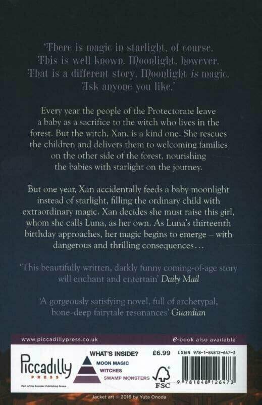 Every year, the people of the Protectorate leave a baby as an offering to the witch who lives in the forest. They hope this sacrifice will keep her from terrorizing their town. But the witch in the Forest, Xan, is kind. She shares her home with a wise Swamp Monster and a Perfectly Tiny Dragon. Xan rescues the children and delivers them to welcoming families on the other side of the forest, nourishing the babies with starlight on the journey.
