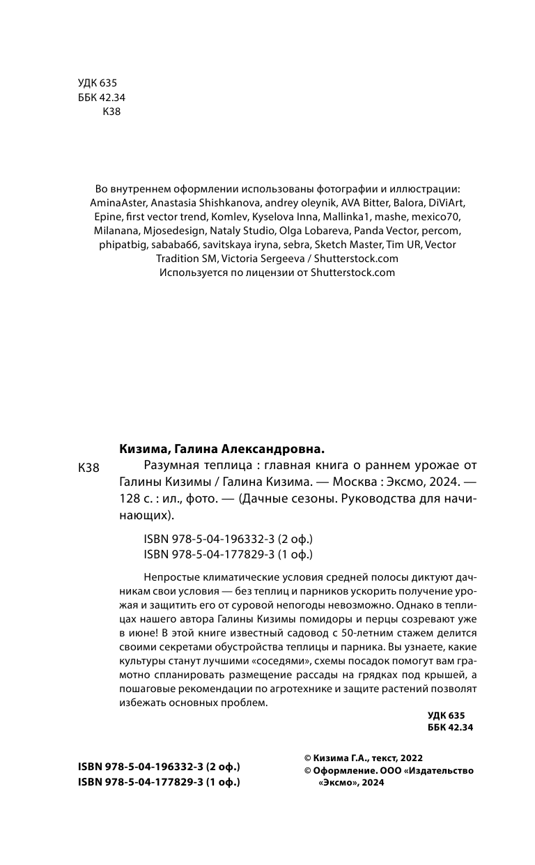Разумная теплица. Главная книга о раннем урожае от Галины Кизимы (второе оформление) (Кизима Галина Александровна); ООО "Издательство "Эксмо", 2024