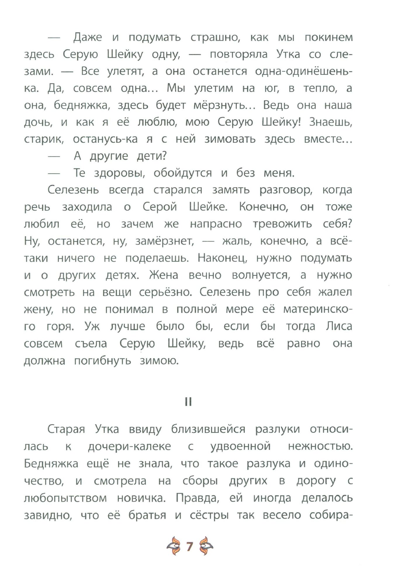 В книжку вошли две замечательные сказки Д. Н. Мамина-Сибиряка: «Серая шейка» и «Притча о Молочке, овсяной Кашке и сером котишке Мурке» из «Алёнушкиных сказок». Для младшего школьного возраста.