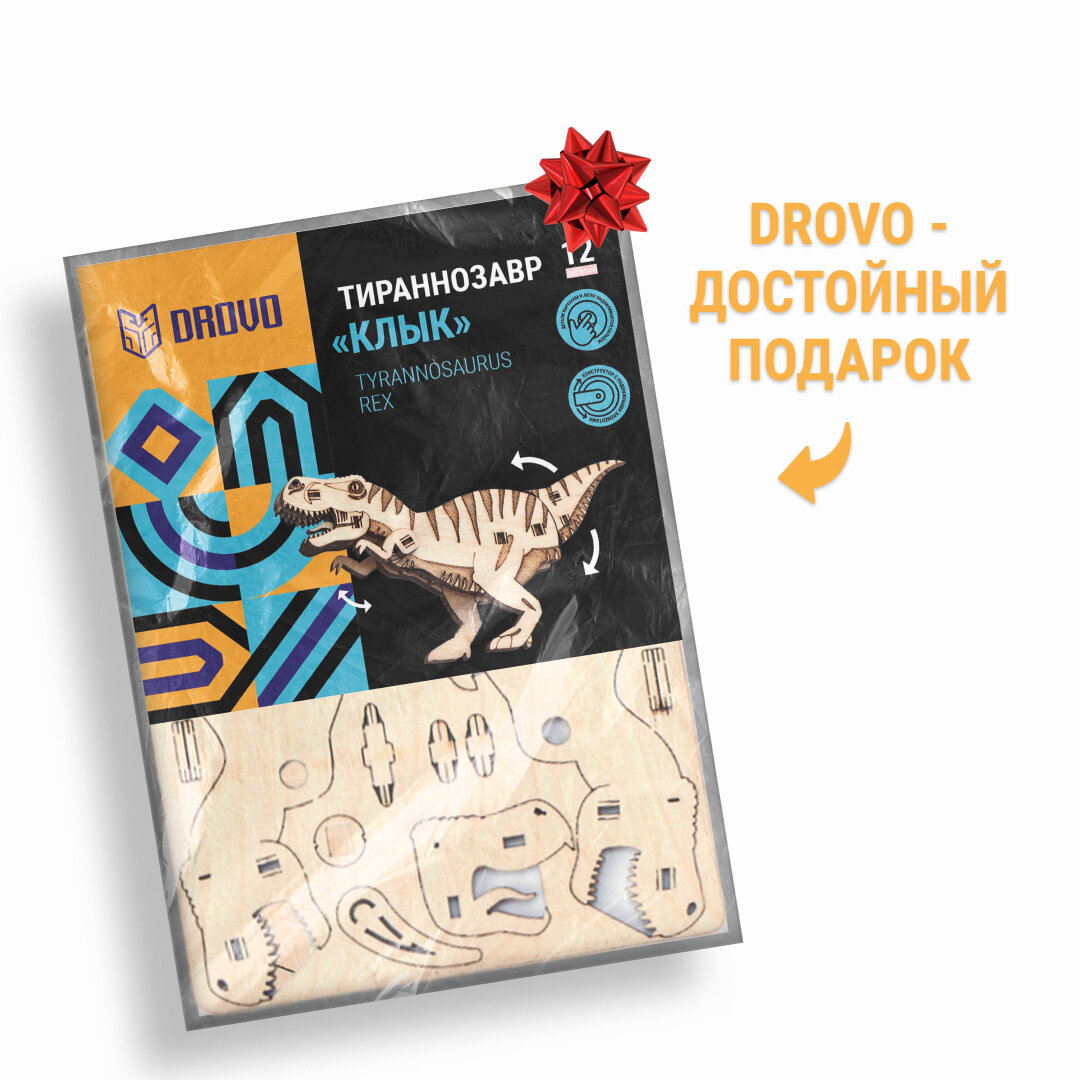 Модель DROVO Деревянный конструктор "Тираннозавр Клык"
