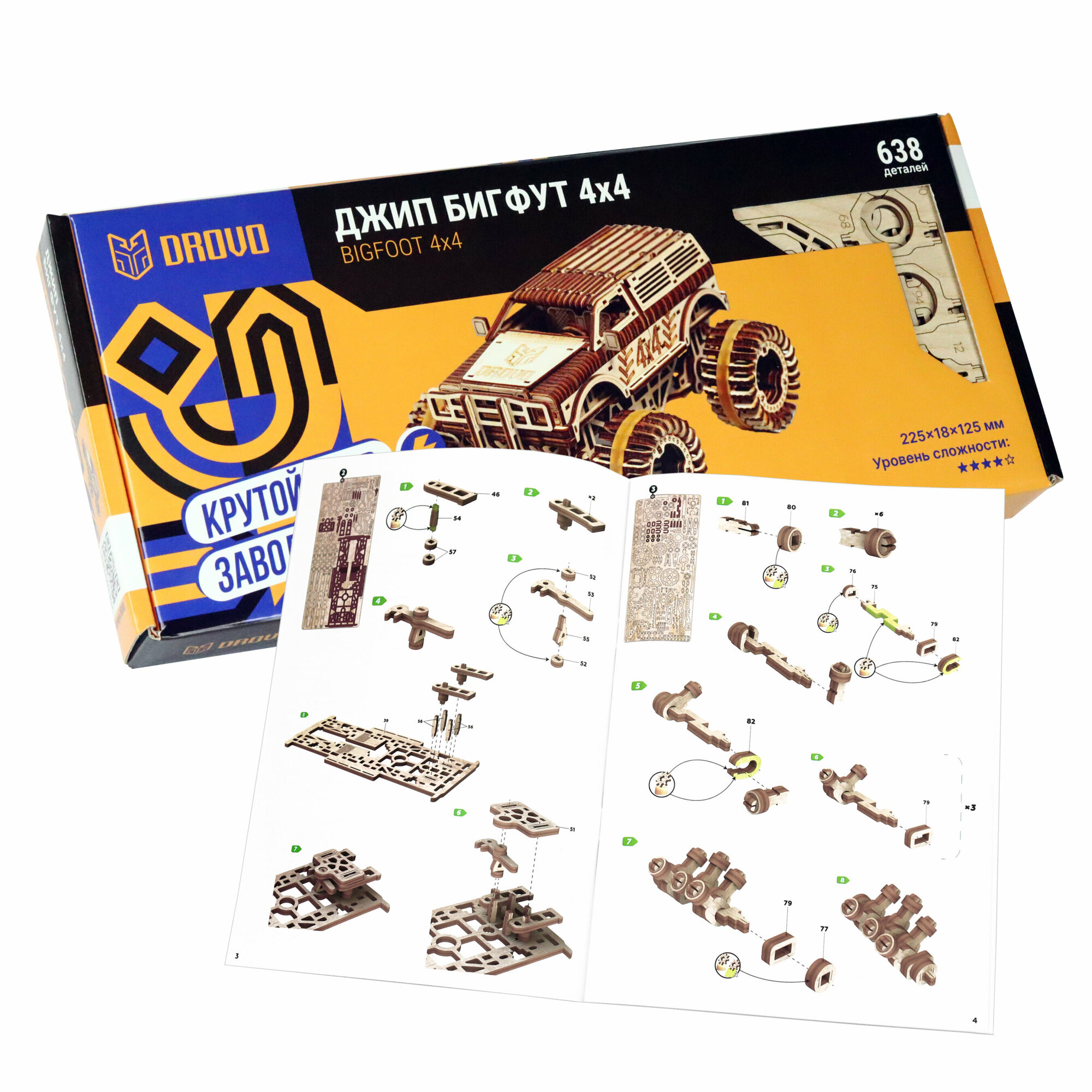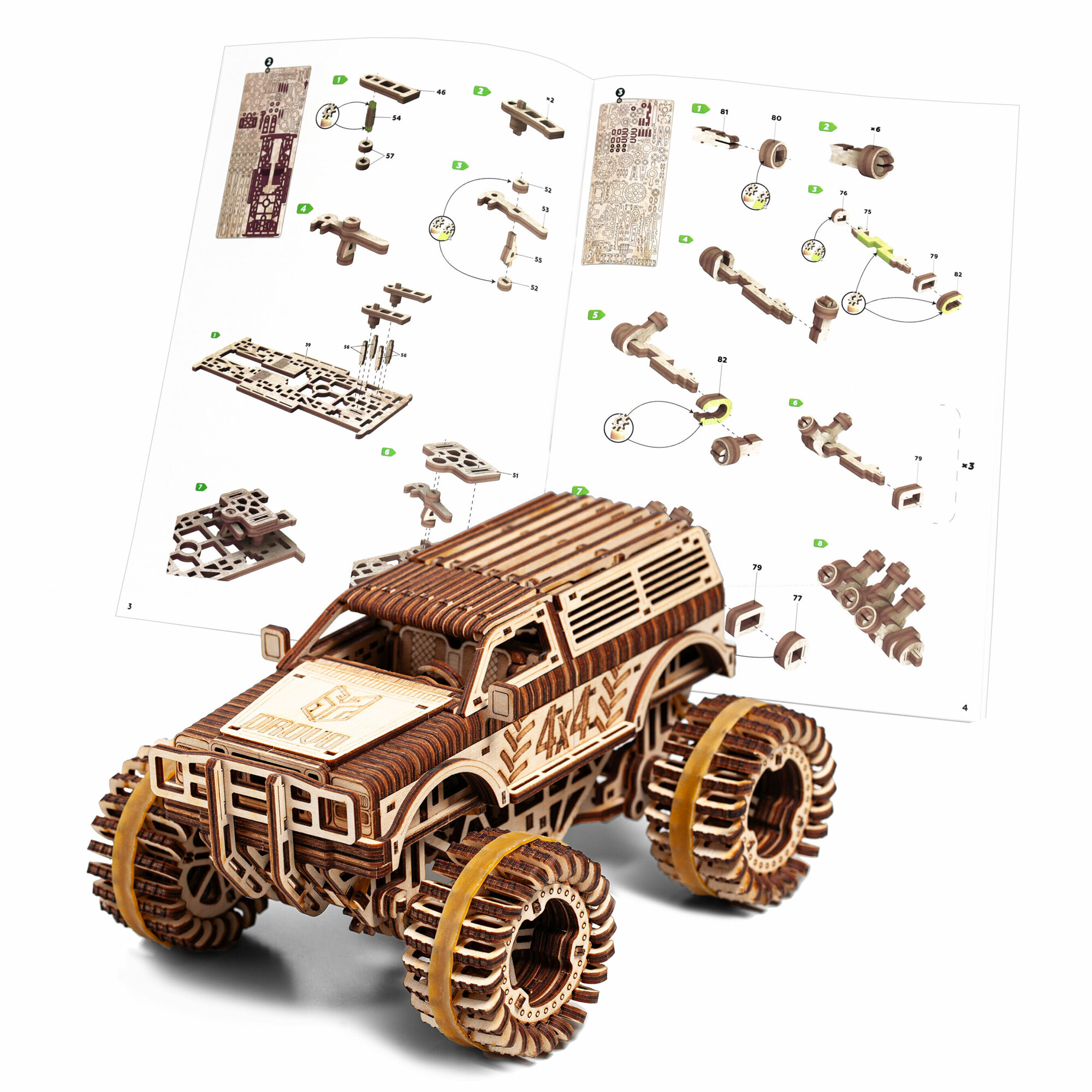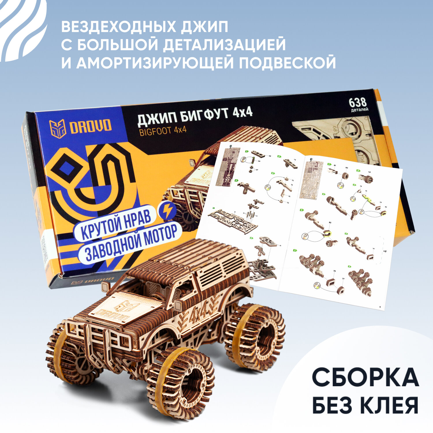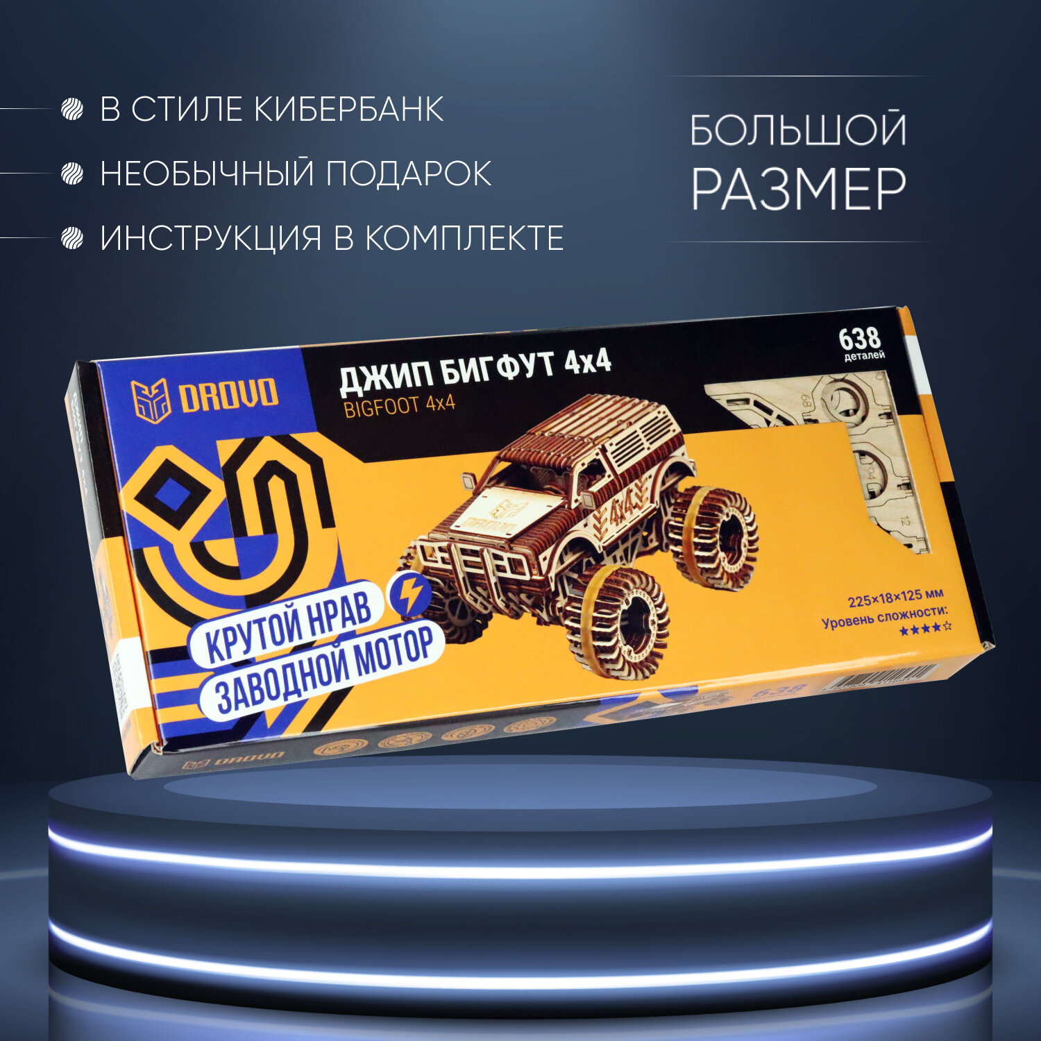 Модель DROVO Деревянный конструктор "Джип БигФут 4x4"