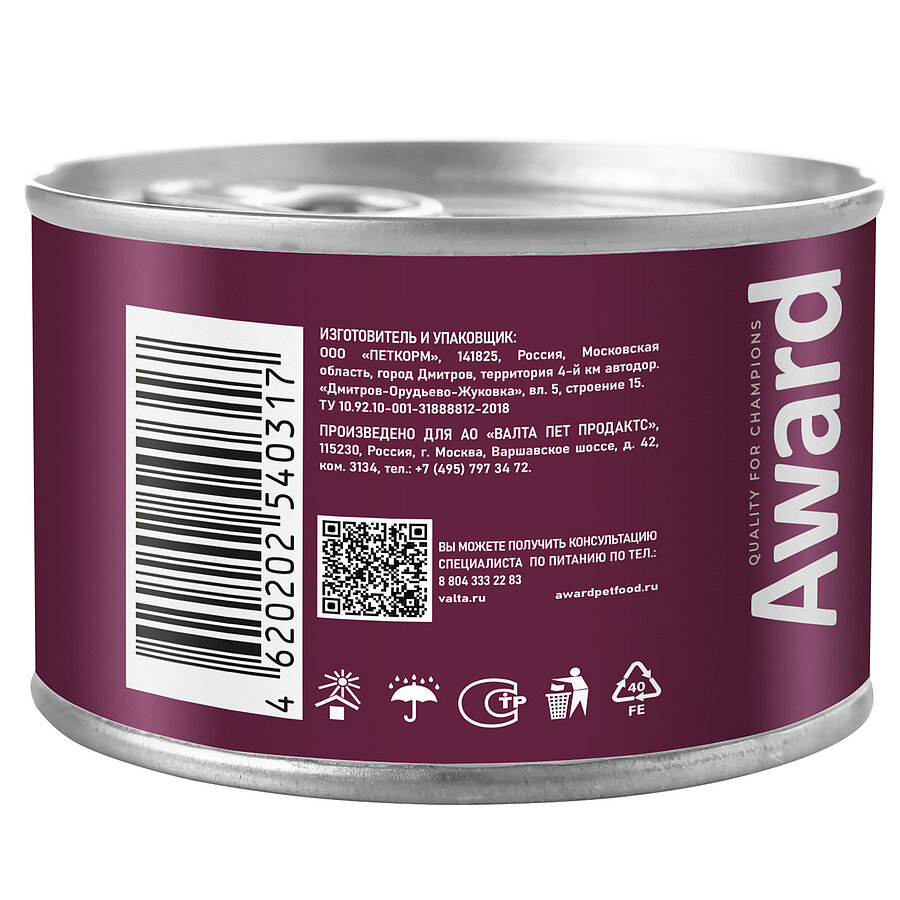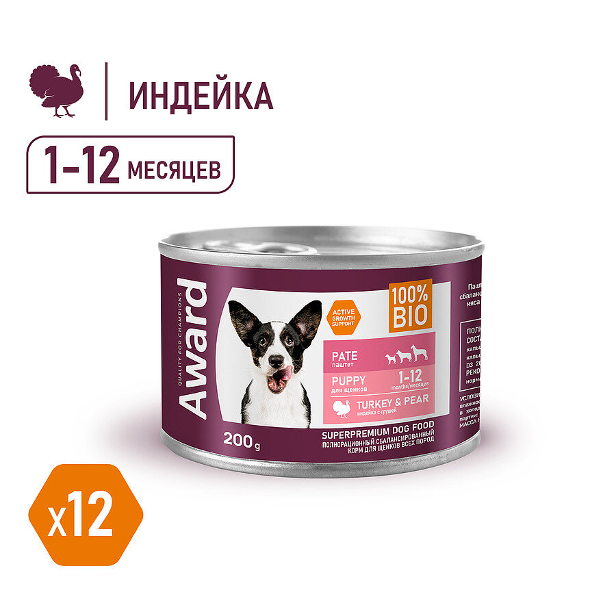 На сегодняшний день товар «AWARD Puppy Корм влаж.паштет из индейки с грушей д/щенков конс.200г (2540317)» можно купить с кешбеком в 2 магазинах: Бетховен, Яндекс.Маркет