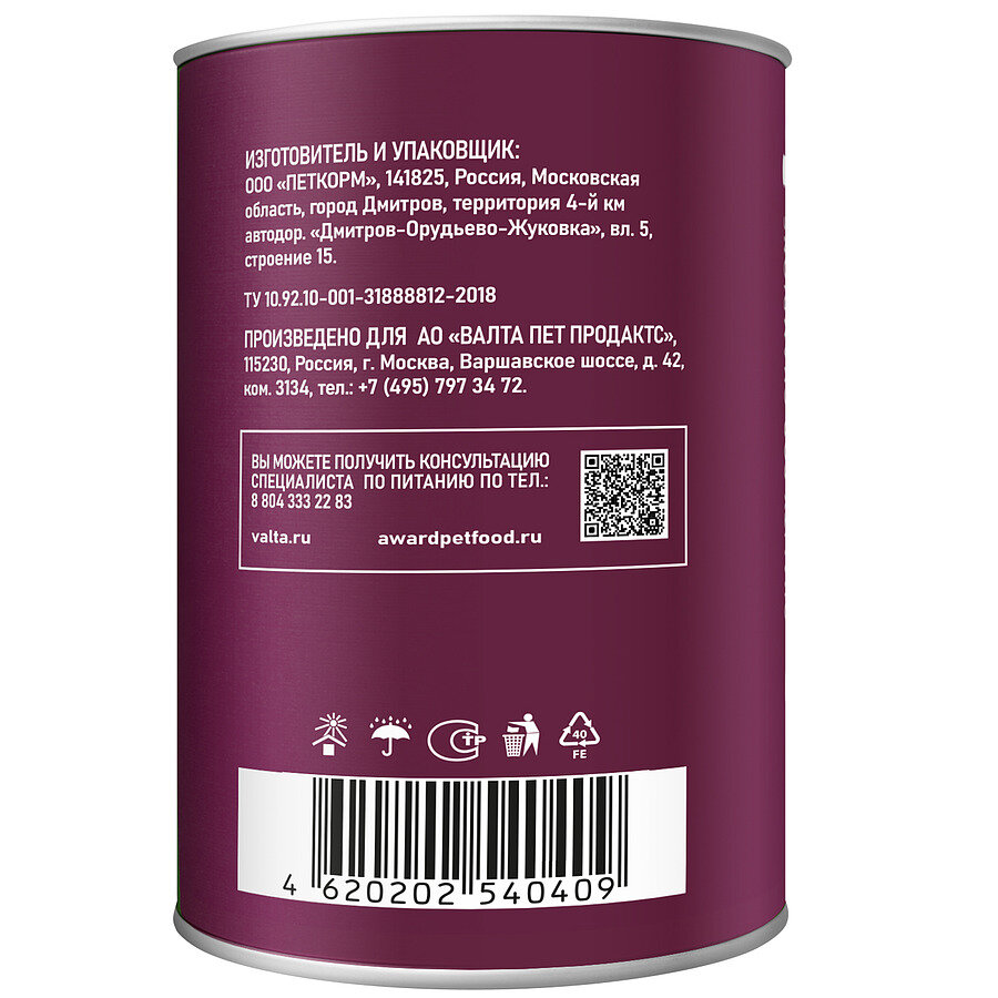 | Особенности | Без искусственных красителей, Без искусственных консервантов, Беззерновой корм. |