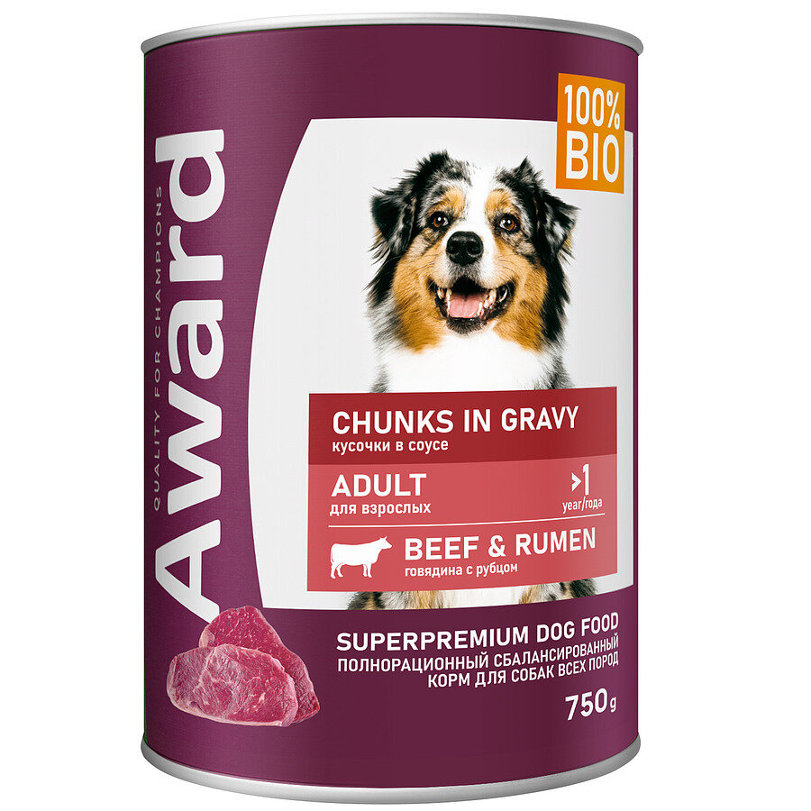 AWARD Adult Корм влаж.говядинарубец кусочки в соусе д/собак конс.750г (2540416)