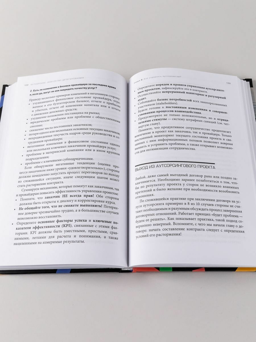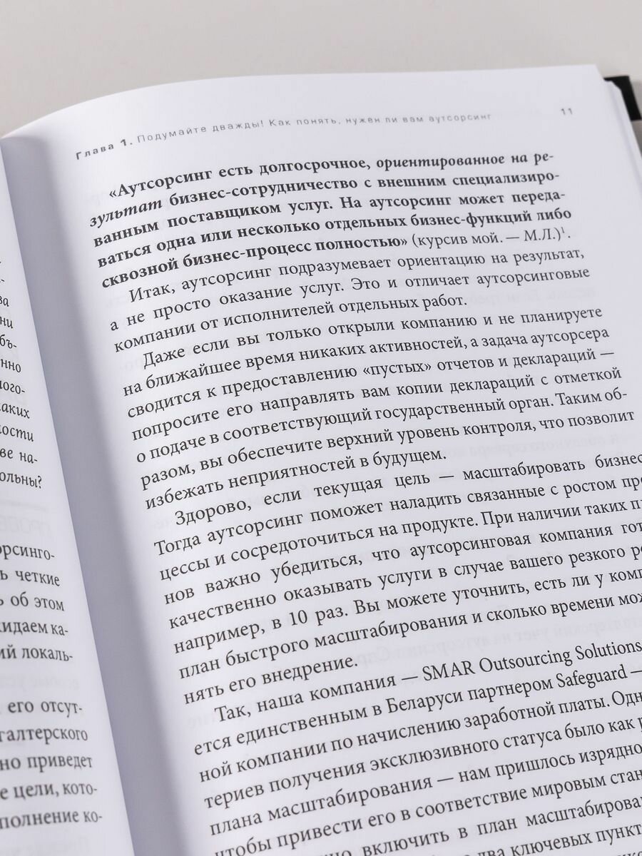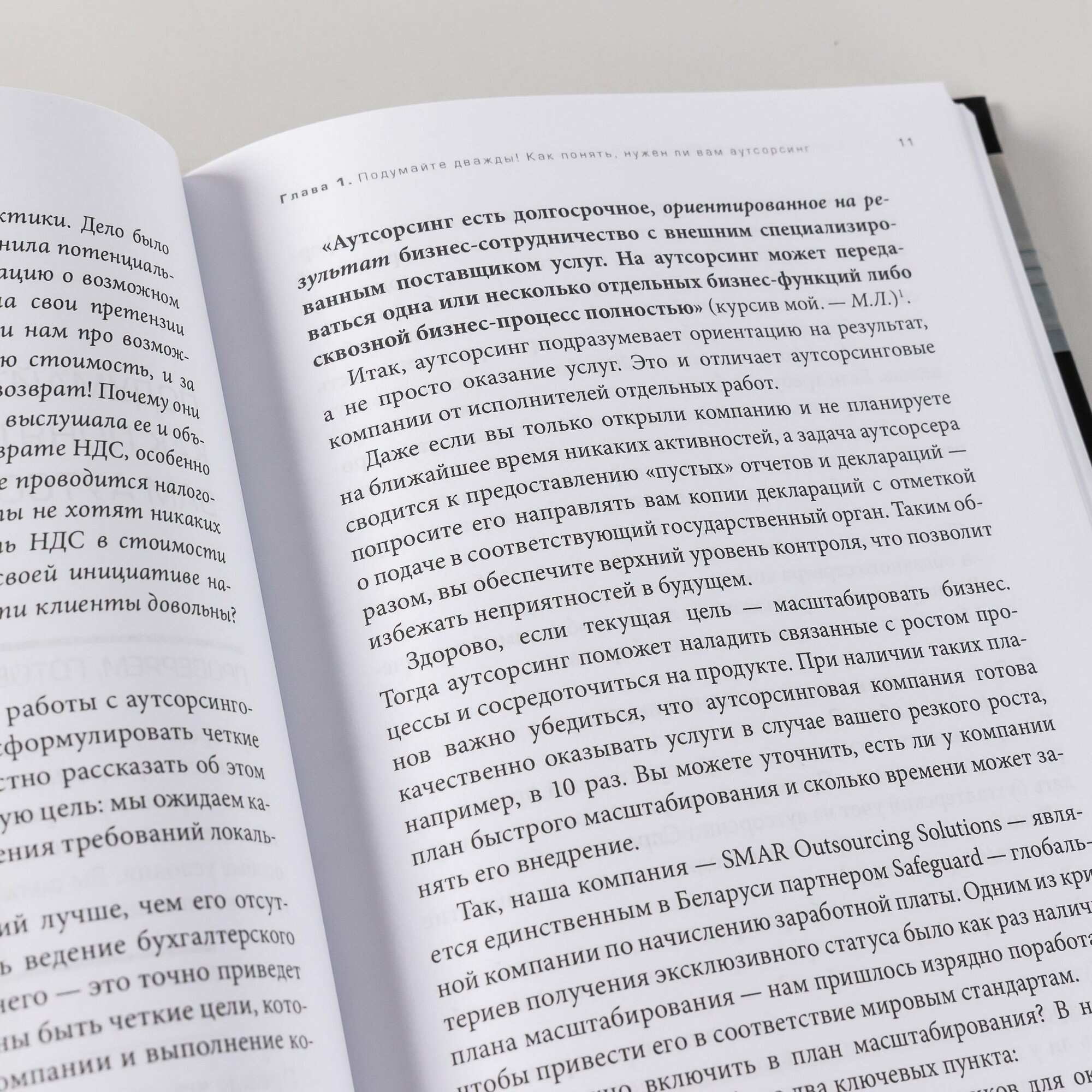 Аутсорсинг : искусство делегирования. Название книги выбрано неслучайно, ведь аутсорсинг — это долгосрочное, нацеленное на результат партнерство, создать которое – настоящее искусство. Очень важно, чтобы такое сотрудничество было эффективным и комфортным для обеих сторон, партнеры уважали и чувствовали друг друга.В основу этой книги легло мое видение стратегического аутсорсинга, сформировавшееся за годы работы в этой сфере. Мой профессиональный опыт включает работу в международной аудиторской компании, многолетнее руководство группой аутсорсинговых компаний SMAR и, наконец, соавторство в создании учебника по аутсорсингу . Наибольшее внимание в книге я уделяю бухгалтерскому, налоговому и кадровому учету, однако многие пункты из моей пошаговой инструкции можно использовать и для других аутсорсинговых проектов.Моей главной задачей было поделиться с вами личным опытом в сфере аутсорсинга, предостеречь от распространенных ошибок и показать, как наладить сотрудничество с провайдером услуг, чтобы оно приносило удовлетворение обеим сторонам. Аутсорсинг — сложный бизнес-инструмент, но если вы будете помнить о нескольких простых правилах и придерживаться их, то у вас все получится