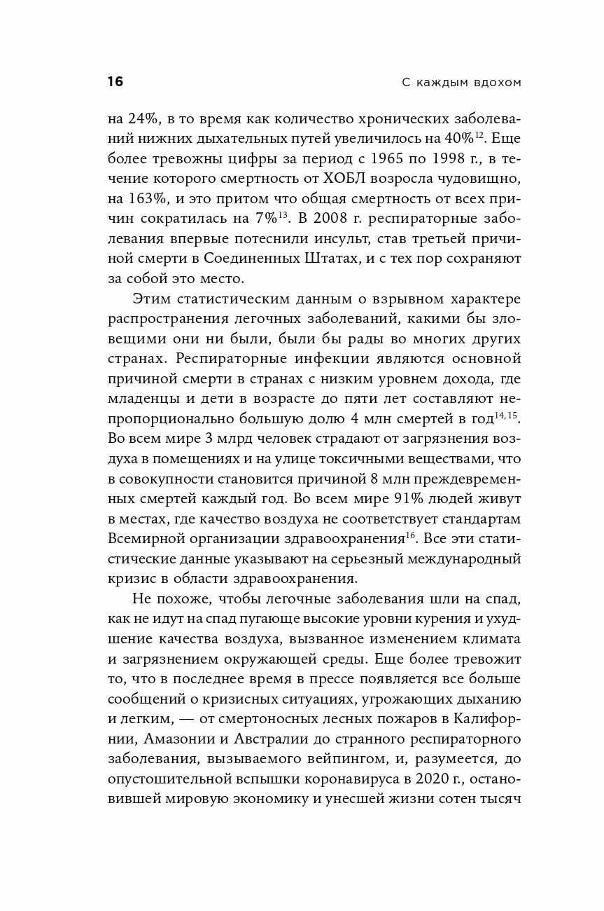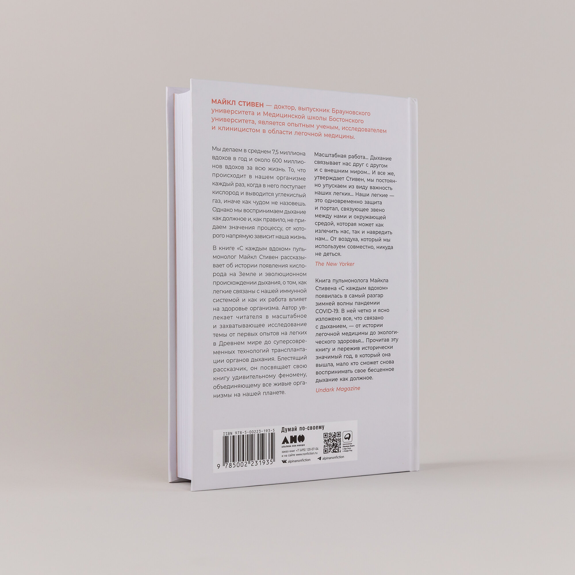 В книге «С каждым вдохом» пульмонолог Майкл Стивен отправляется в путешествие, чтобы пролить оригинальный и необходимый свет на наши легкие. Он рассказывает об истории появления кислорода на Земле и эволюционном происхождении дыхания, исследует целительную силу дыхания и его духовный потенциал. Он доступным языком объясняет, как легкие связаны с нашей иммунной системой и обществом в целом. Несмотря на достижения науки, наши легкие находятся под все большей угрозой. Астма распространена как никогда, растущий уровень стресса делает наши легкие уязвимыми для болезней а COVID-19 поднял нашу уязвимость до исторических масштабов. Книга «С каждым вдохом» дарит вдохновение и надежду миллионам людей, чьи легкие затронуты болезнью, и открывает жизненно важные перспективы для всех нас.