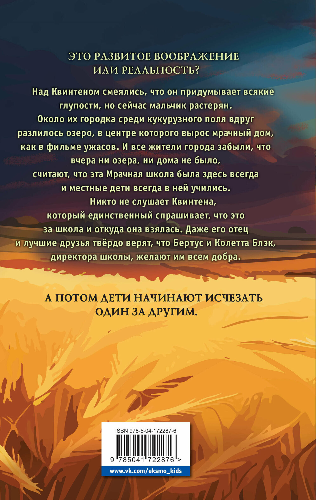 Когда Квинтен был маленьким, его мама пропала после жуткой бури. Окружающие считают, что из-за этого Квинтен вырос таким странным. Ему часто снятся кошмары, и он всё время рассказывает про зомби, ведьм и ведьмаков.А сейчас странными стали все окружающие, и Квинтен чувствует себя самым нормальным. Ведь после урагана на кукурузном поле из ниоткуда возникла Мрачная школа, и все жители деревни уверены, что она была здесь всегда и дети всегда в ней учились. Один Квинтен помнит, что ещё пару дней назад здания школы и в помине не было, и замечает, как взрослые будто забывают про своих детей, отведя их в Мрачную школу. Это колдовство? Почему только Квинтен сохранил память? И не могут ли быть связаны его способности с исчезновением его мамы?