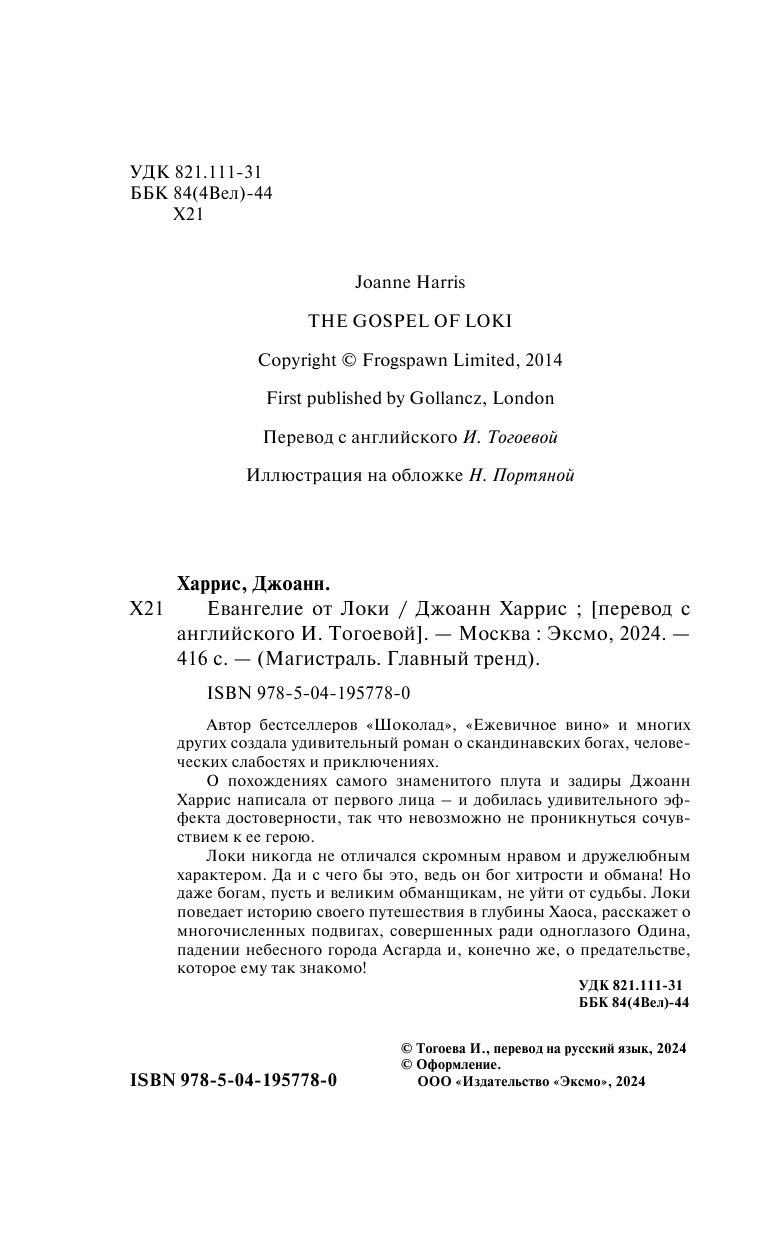 Книга: Евангелие от Локи (Джоанн Харрис); ООО "Издательство "Эксмо", 2024
