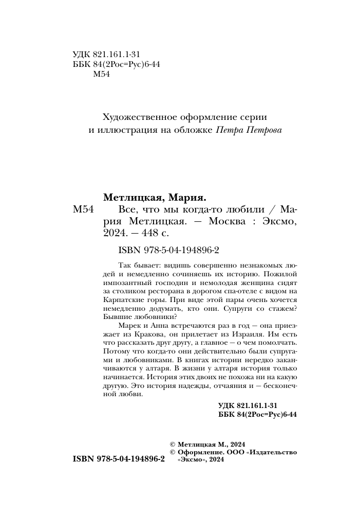 Сервис сравнения цен СкидкаГИД предлагает сравнить цены на товар «Книга: Все что мы когда-то любили (Метлицкая Мария Робертовна); ООО "Издательство "Эксмо", 2024»