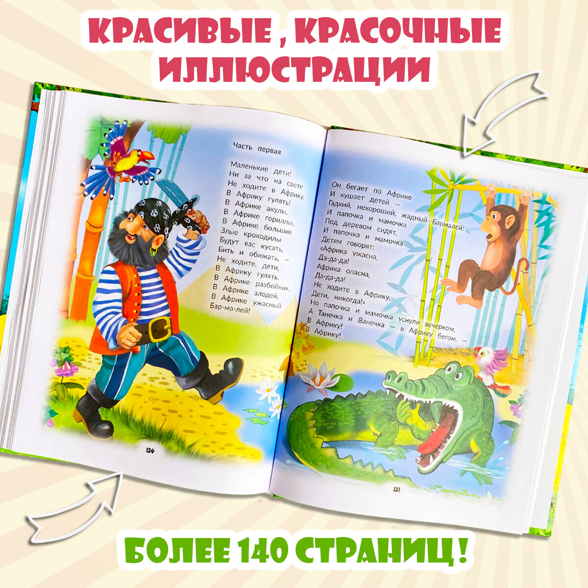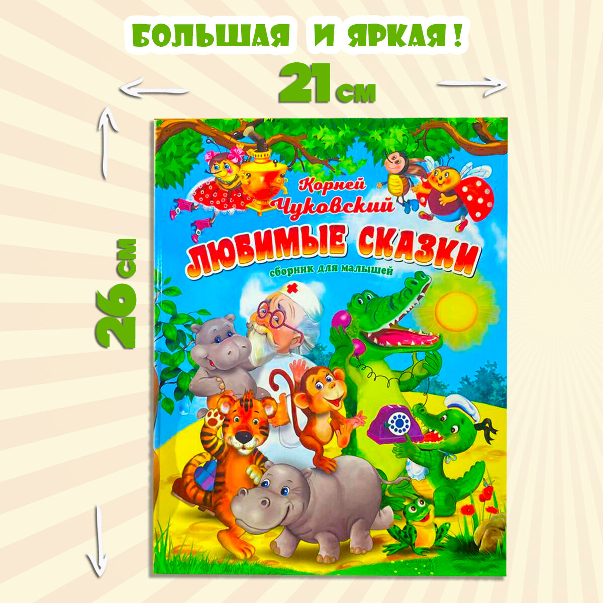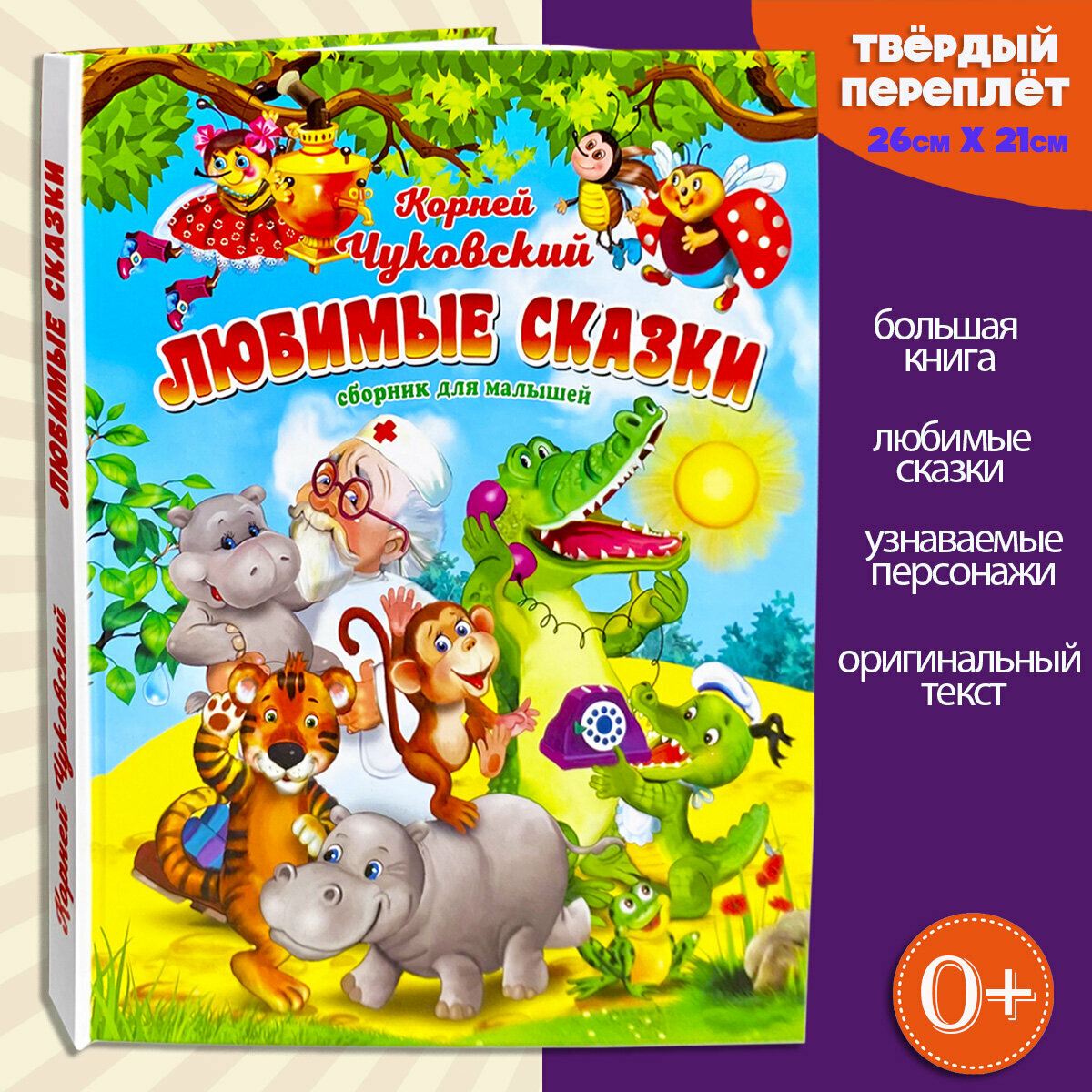 Сказки Корнея Чуковского - классика для детей. Сказки Чуковского сборник сказок для детей и для малышей. Их любит и с удовольствием читает не одно поколение. Стихотворная форма сказок очень легко и доступно воспринимается. Сказки Чуковского для детей с иллюстрациями - это целая Вселенная с фантастическими персонажи и чудесами, которые знакомят детей с понятием добра и зла. Большой размер книги, красивейшие иллюстрации не оставят равнодушными даже взрослых. В книге представлены сказки: Муха Цокотуха, Айболит, Телефон, Краденое Солнце, Федорино горе, Путаница, Тараканище, Бармалей