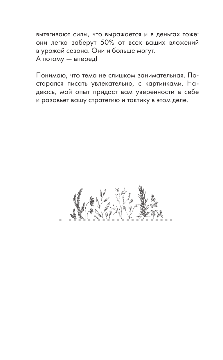 Автор этой книги, известный ученый-почвовед, поможет разобраться с сорняками без труда, укажет на их слабые места и научит, как к ним подобраться. Эта книга – ваша теория по успешной борьбе с сорняками на своем участке. Она про ошибки и про самые выгодные ходы, ведущие к победе над бурьяном. Вы найдете в ней авторские приемы, эффективные технологии, узнаете о методах, которые помогут распрощаться с нежеланными гостями на своем огороде раз и навсегда!