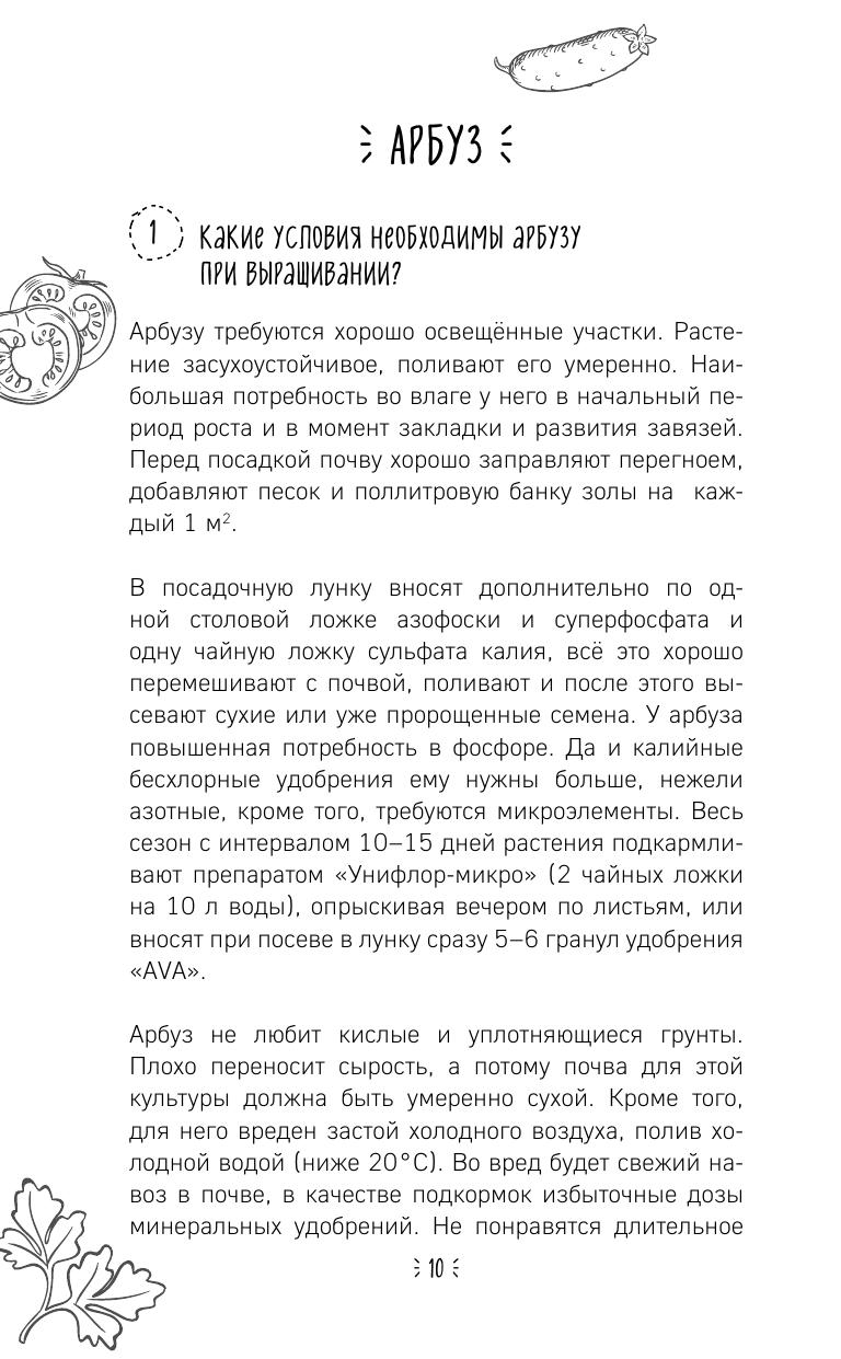 Эта книга — главный инструмент любого огородника, мечтающего об урожае без битвы за него. Она про гарантированный результат, к которому стремятся все огородники: как опытные, так и начинающие. В ней вы найдете ответ на любые вопросы, которые возникают при выращивании овощей и зелени. Сто главных советов от автора помогут освоить приемы выращивания любой овощной и зеленной культуры от посева на рассаду, ухода, подкормки, полива до его своевременного сбора.Дачники, знакомые с разумным подходом автора этой книги Галины Кизимы, экономят собственные средства и силы, получая при этом урожай иногда даже раньше и больше, чем те, кто с этими методами еще не знаком.Галина Кизима — любимый автор дачников, ее 50-летний опыт успешного земледелия на шести сотках ценится миллионами садоводов и огородников за разумный подход, при котором вырастить ранний и богатый урожай можно даже при самых неблагоприятных климатических условиях, сэкономив при этом силы, время и деньги!