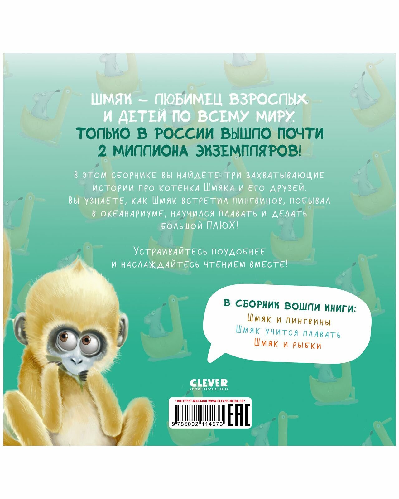 В этом сборнике вы найдёте три захватывающие истории про котёнка Шмяка и его друзей. Вы узнаете, как Шмяк встретил пингвинов, побывал в океанариуме, научился плавать и делать большой Плюх! Устраивайтесь поудобнее и наслаждайтесь чтением вместе! В сборник вошли книги: