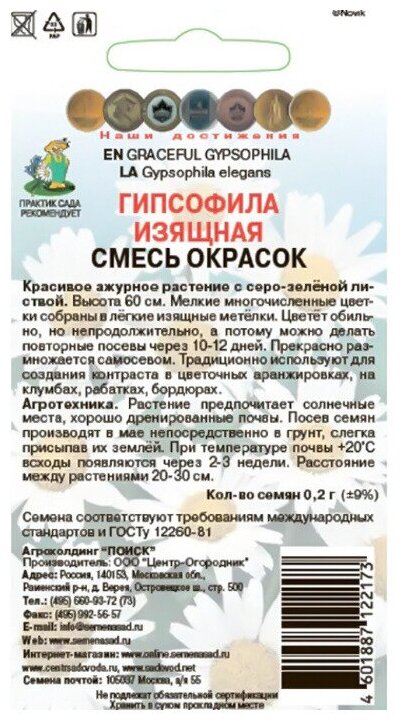 На сегодняшний день товар «Гипсофила изящная смесь окрасок 0.2 г ПОИСК» можно купить с кешбеком в 1 магазине: Яндекс.Маркет