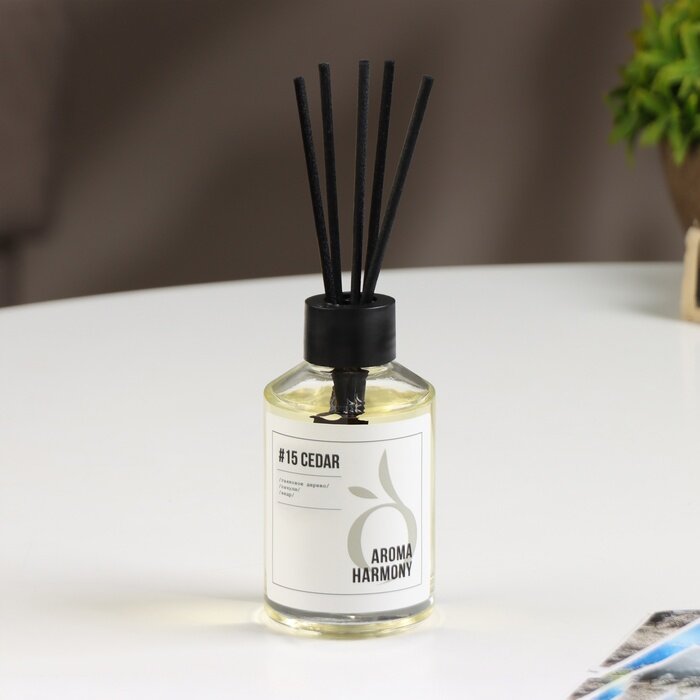 **Ароматический диффузор Aroma Harmony Кедр** предназначен для размещения на полке, тумбе, стойке, столе. Это универсальный аксессуар, который подходит для создания приятной атмосферы в гостиной, спальне, офисе, гостиничном номере или фойе ресторана. Для применения необходимо достать из коробки содержимое, вставить палочки во флакон.