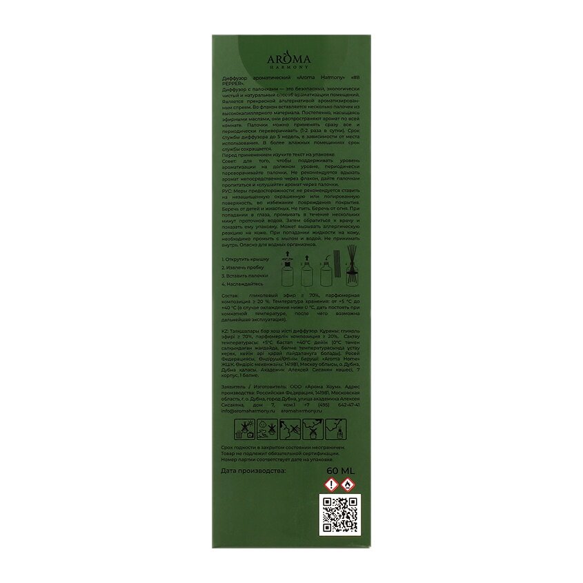 Ароматический диффузор Aroma Harmony Перец 60 мл (Аромадиффузор Nature Pepper 60мл зеленый)