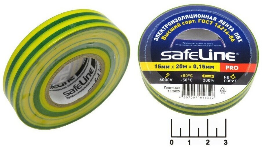 Изолента Safeline 15/20 желтая-зеленая