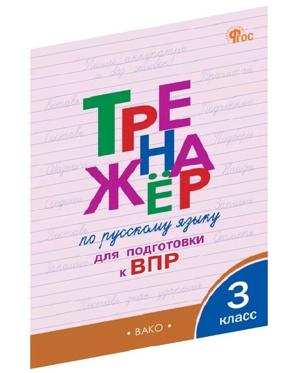 В пособии систематизирован материал, который позволит подготовить учеников к выполнению Всероссийской проверочной работы (ВПР) по русскому языку в 3 классе. Работать с тренажёром рекомендуется в урочное и внеурочное время. Пособие составлено в соответствии с требованиями ФГОС НОО. Издание предназначено для учителей, учащихся 3 класса и их родителей.