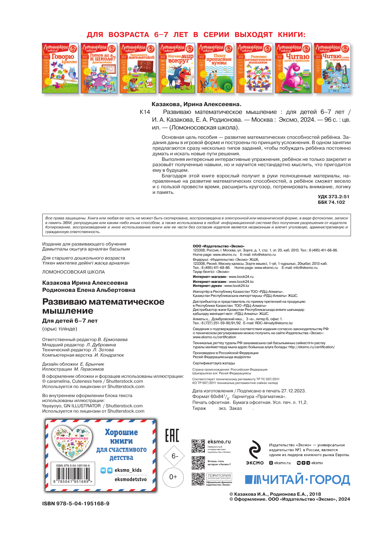 Развиваю математическое мышление: для детей 6-7 лет (Родионова Елена Альбертовна, Казакова Ирина Алексеевна); ООО "Издательство "Эксмо", 2024