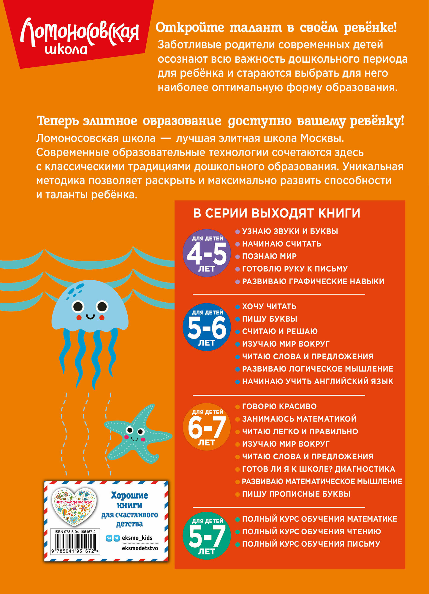 Легендарная серия обучающих пособий от издательства «Эксмо» для развития ребенка и подготовки к школе теперь в новом оформлении!Проверенная на практике и показавшая свою эффективность методика, умело сочетающая современные технологии обучения с лучшими классическими традициями российского образования, будет способствовать развитию навыков письма у дошкольника.Выполняя разнообразные игровые задания на рисование линий и предметов, штриховку, раскрашивание, дорисовывание, копирование по клеткам, ребенок сможет укрепить пальчики руки и развить графические навыки, внимание, воображение, стать более аккуратным и усидчивым. Обучая дошкольника письму, взрослый должен обращать внимание, прежде всего, на развитие глазомера, правильную постановку руки, формирование умения писать буквы на строке ровно и красиво.Все задания, представленные в книге, расположены по мере усложнения и ориентированы на реальные возможности дошкольников. Кроме того, в пособии имеются методические рекомендации, которые подскажут, как лучше и качественнее организовать занятие с ребенком.Книга станет отличным подарком талантливому любознательному ребенку 6—7 лет. Знания, умения и навыки, которые он приобретет в результате занятий, позволят ему в дальнейшем их успешно использовать и почувствовать уверенность в своих силах.