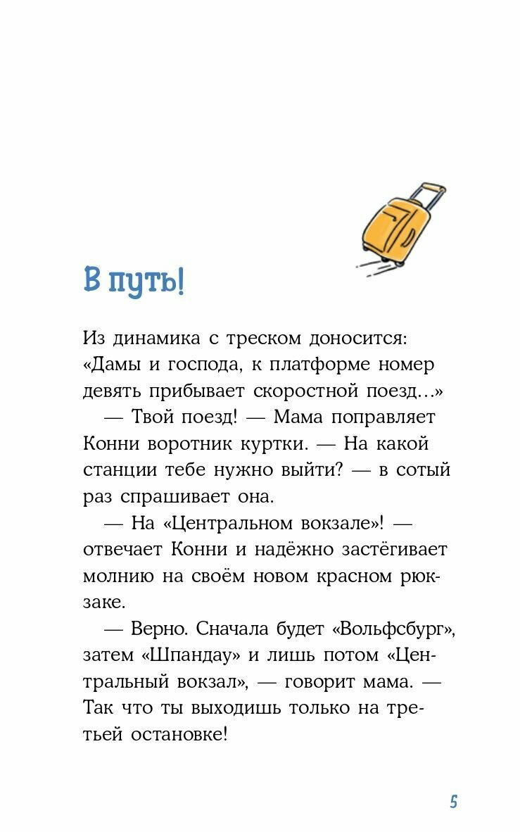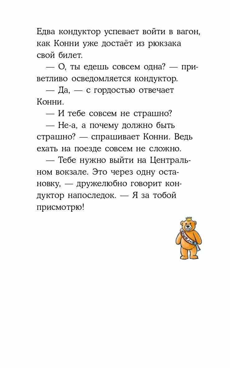 Конни отправляется на выходные в столицу к родственникам, причём совсем одна! Впереди её ждут настоящие приключения. И даже пропажа рюкзака с вещами и поиски его по всему городу не испортят выходные. Ведь помощь друга и опыт расследования запутанных ситуаций выручит всегда.
