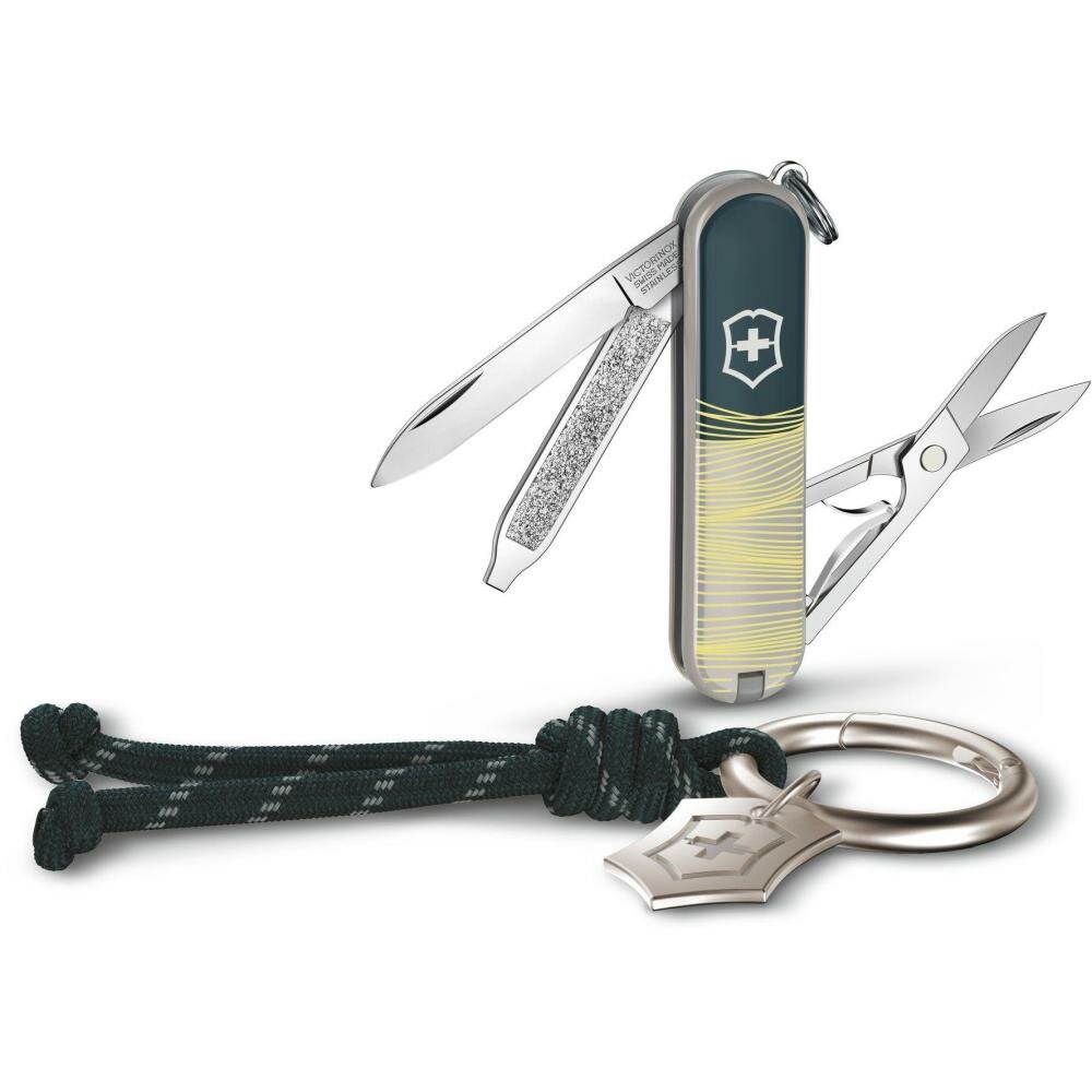 Нож Victorinox Classic SD произведен с такими практичными функциями, как ножницы, пилочка для ногтей и лезвие. Соответствующие аксессуары в виде кольца для ключей с брелоком и шейного шнурка для перочинного ножа дополняют эти стильные комплекты. Victorinox гордится более чем 135-летним опытом производства высококачественных ножей в Швейцарии.Функции:1. лезвие маленькое2. ножницы3. пилочка для ногтей с отверткой 2,5 мм4. кольцо с брелоком для ключей5. пинцет6. зубочисткаМатериал накладок: ABS/Cellidor (Акрилонитрилбутадиенстирол представляет собой аморфный термопласт. АБС-пластики обладают превосходной ударопрочностью, жесткостью на изгиб и твердостью поверхности.Поставляется в подарочной коробке.