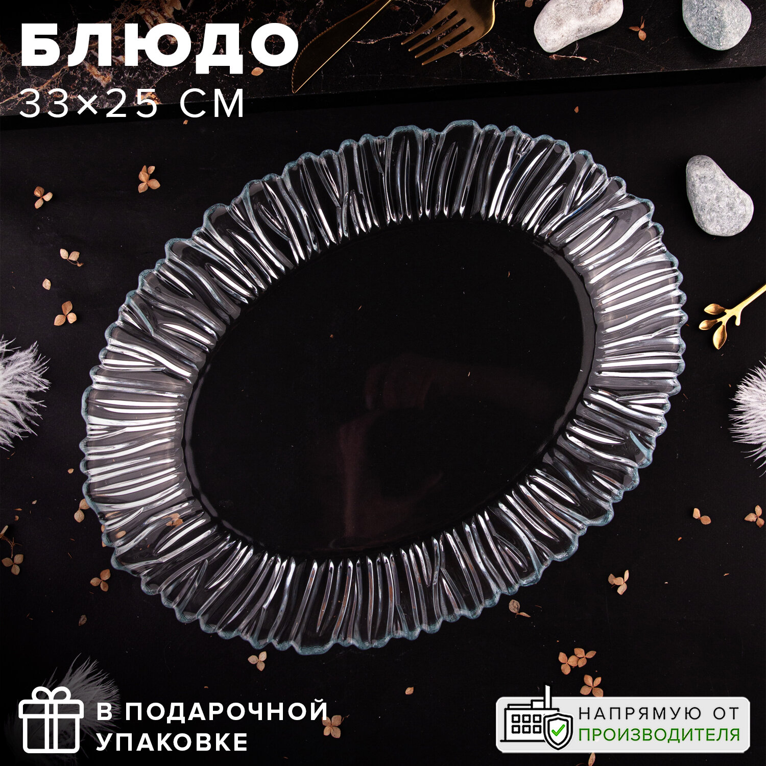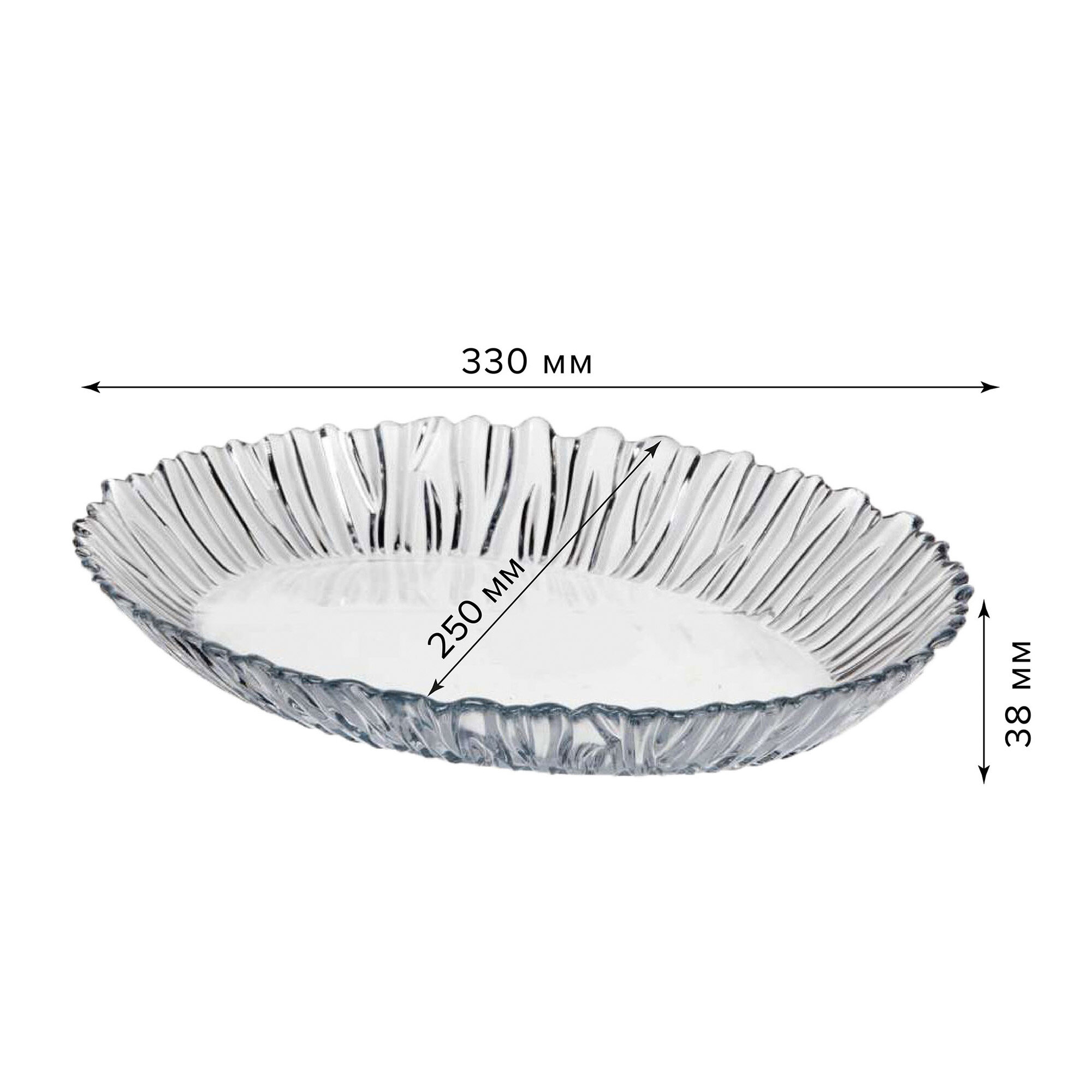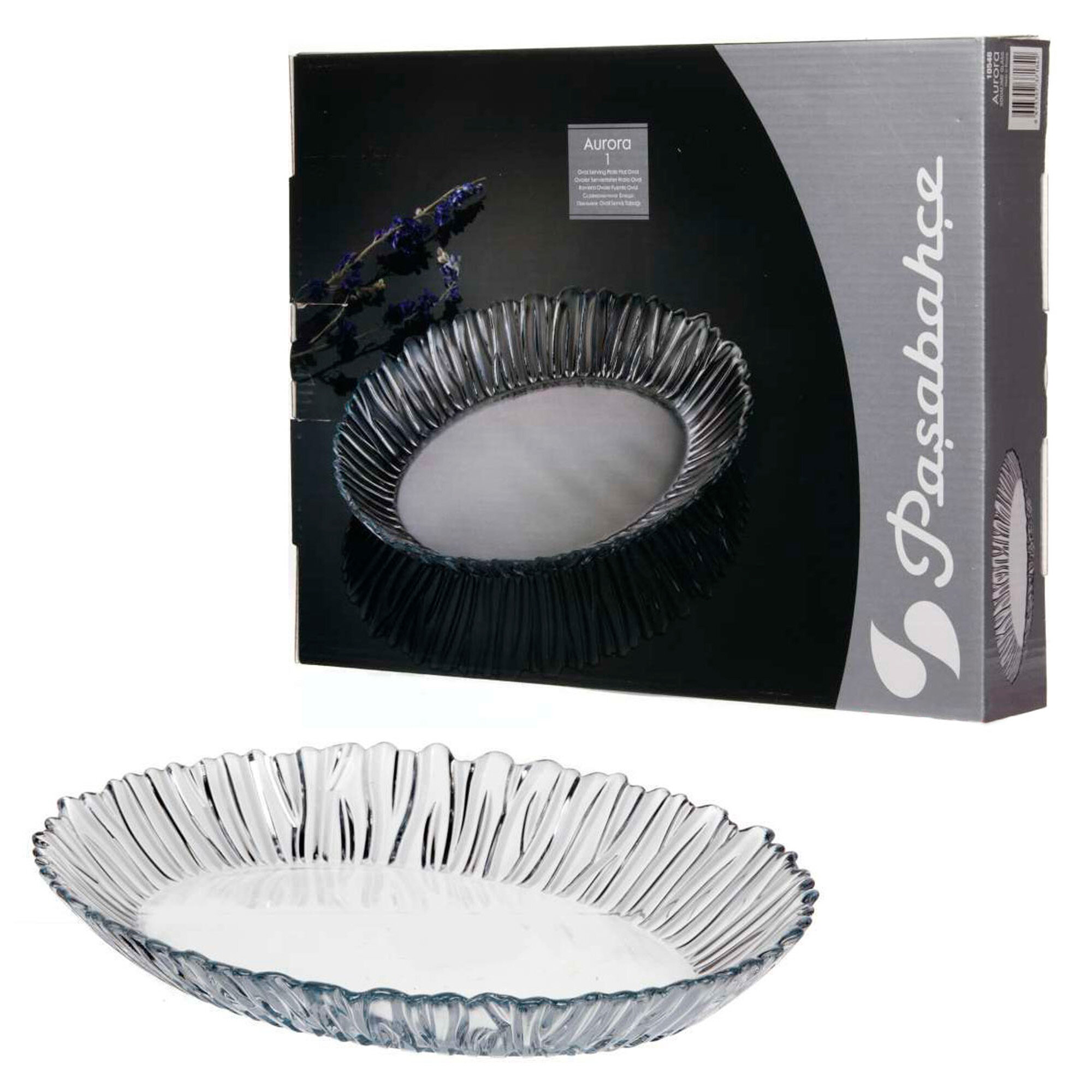 Овальное блюдо Pasabahce Аврора 25х33 см — стильное решение для сервировки, жаропрочное стекло и универсальность для дома, дачи и подарка.