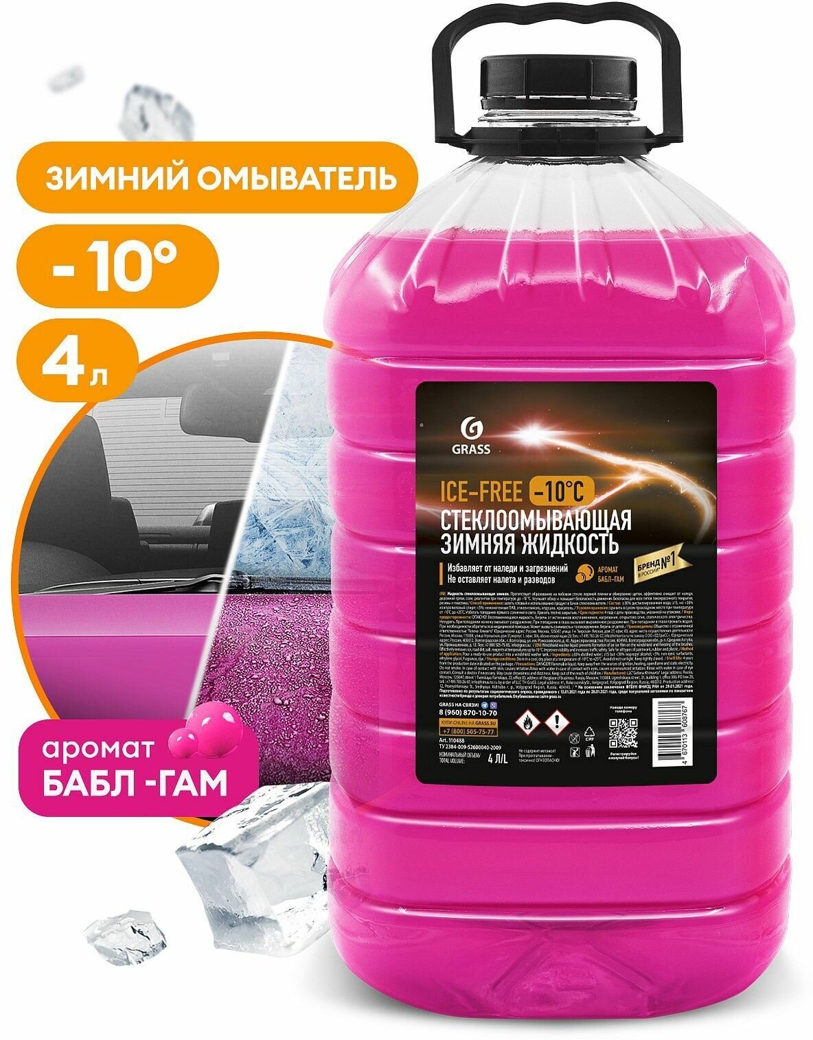 Жидкость стеклоомывающая зимняя. Препятствует образованию на лобовом стекле ледяной пленки и обмерзанию щеток, эффективно очищает от наледи, дорожной грязи, соли, реагентов при температуре до 10 С.