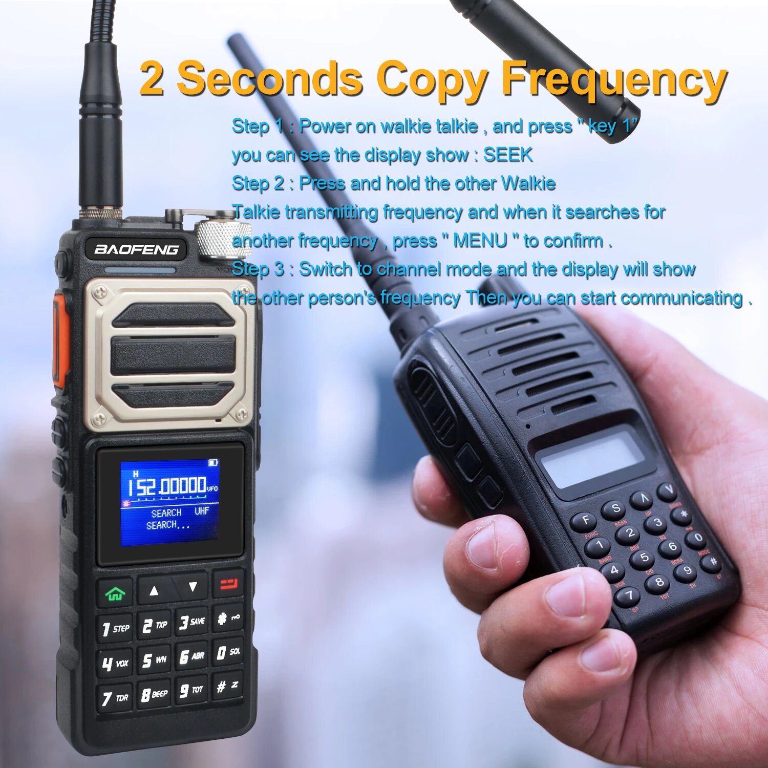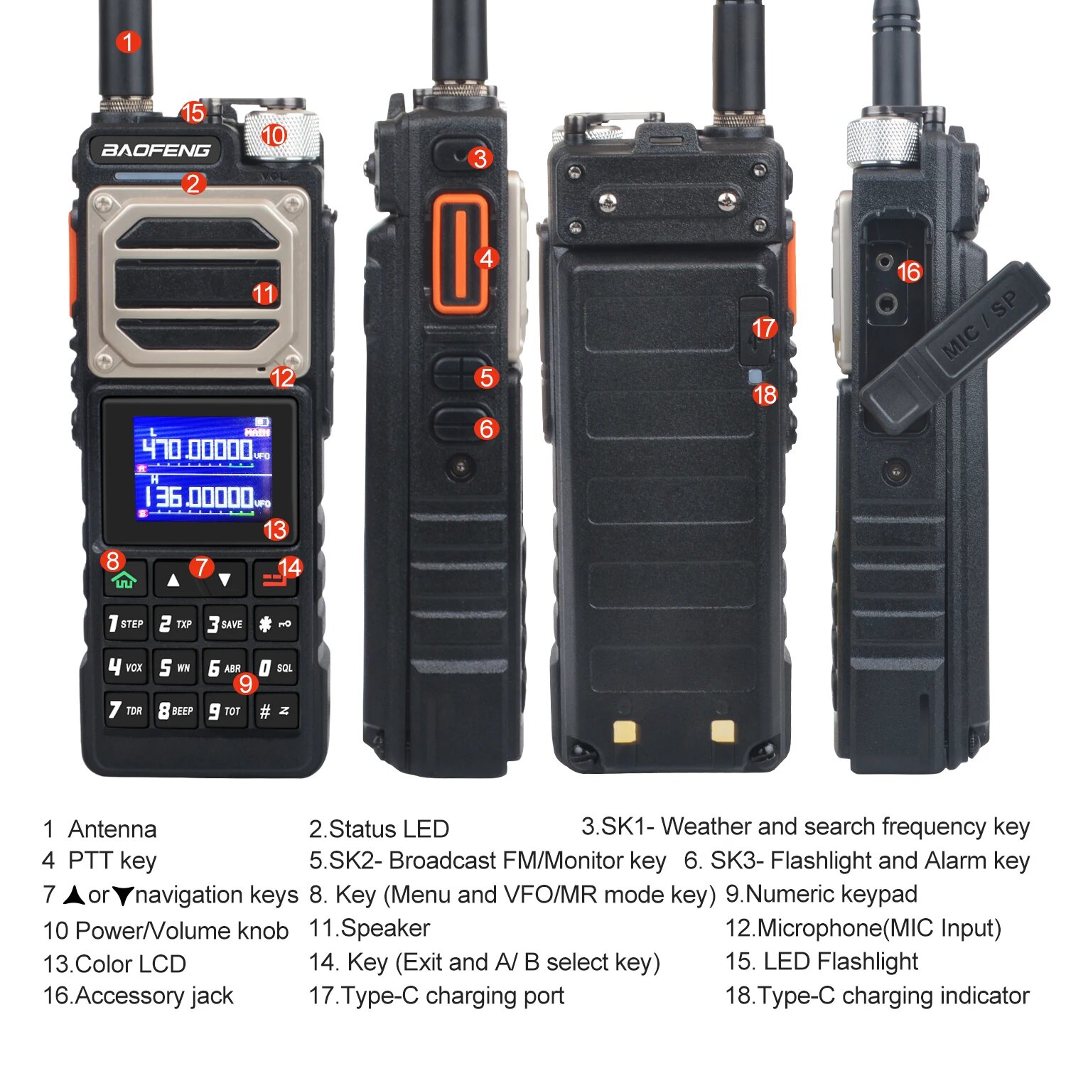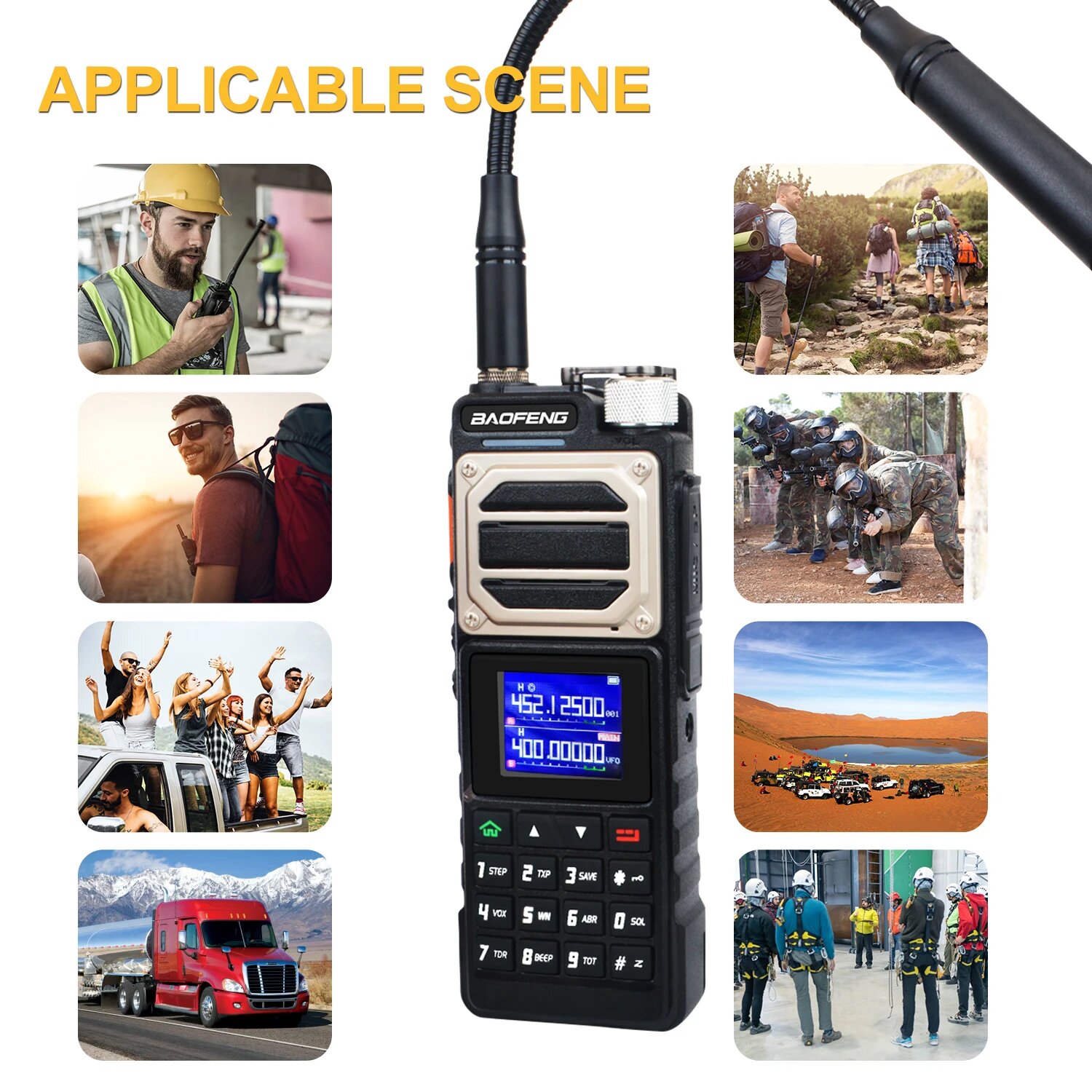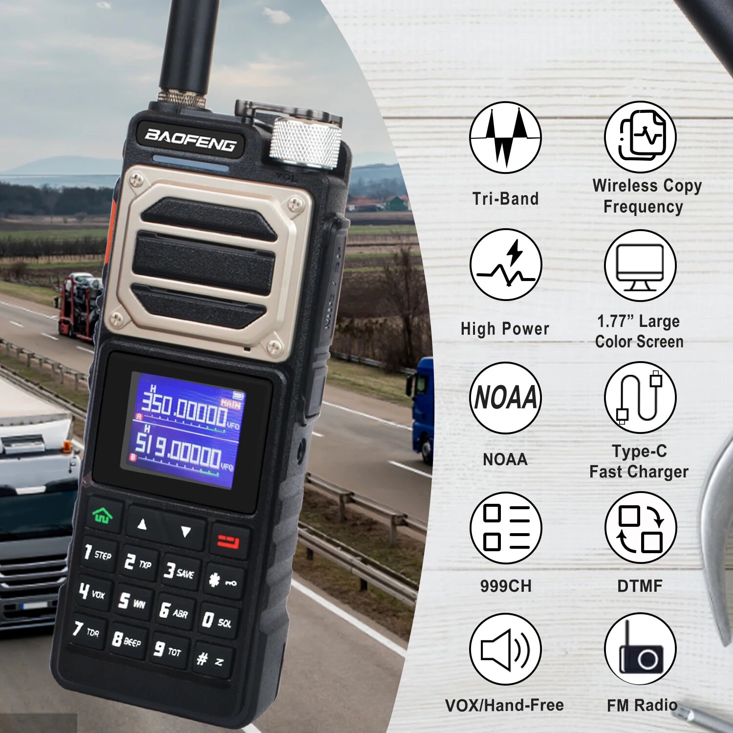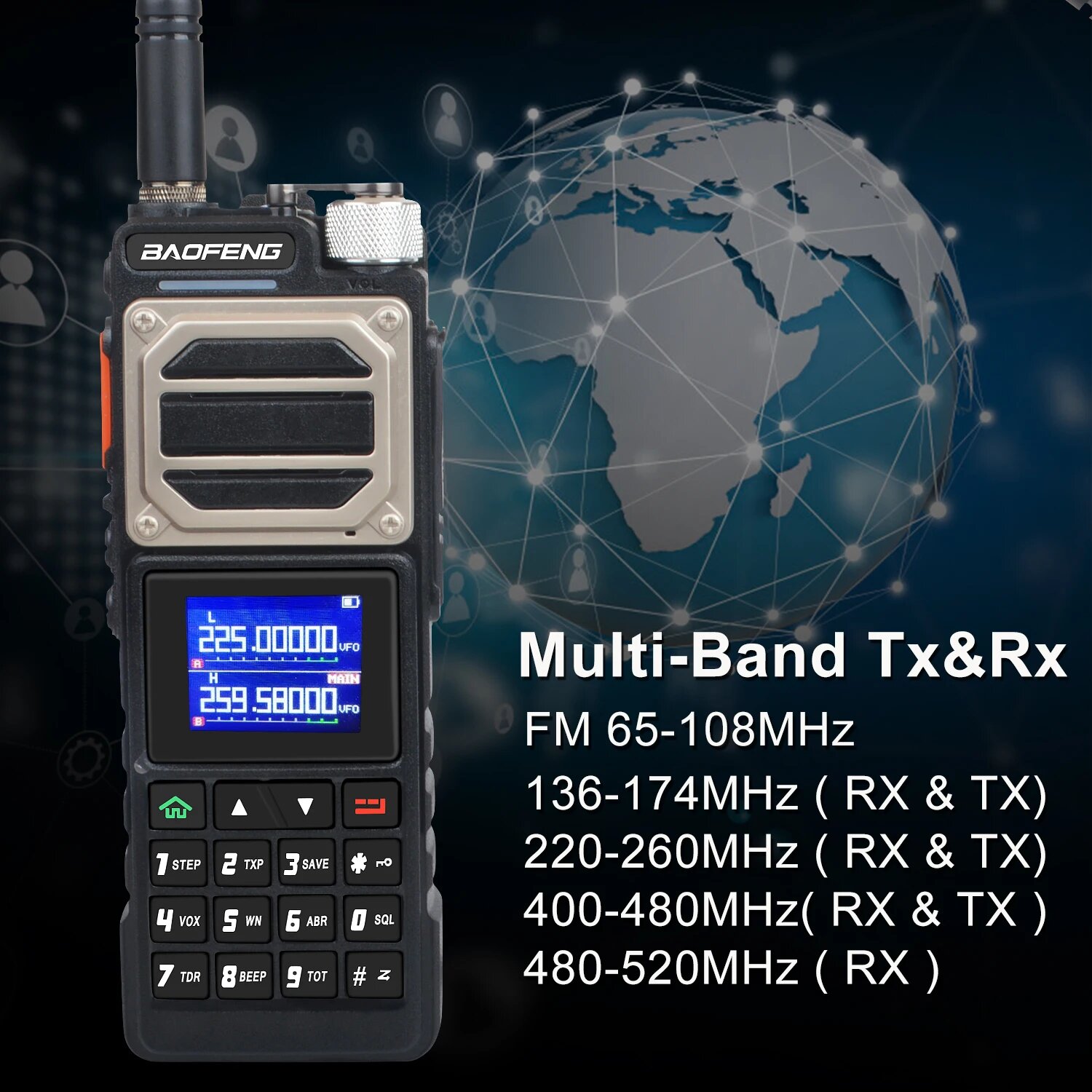 Baofeng - цифровая радиостанция, высококачественное двухдиапазонное устройство связи, обладающее рядом впечатляющих характеристик, включая, цветной ЖК-дисплей и улучшенный аудиосигнал, десять уровней регулировки шумоподавления. С дальностью действия до 10 км и объемом памяти до 999 ячеек, эта компактная и легкая радиостанция идеально подходит для профессионального и личного использования.5 ДИАПАЗОНОВ ЧАСТОТТолько прием: 136-174 MHz, 400-520 MHzТолько передача: 144-148 MHz, 420-450 MHzПрием и передача: 220-260 MHzФУНКЦИЯ ЗАХВАТА ЧАСТОТРация Baofeng оборудована функцией автоматического поиска и настройки на заданную частоту (в том числе с субтонами), что упрощает процесс настройки и делает его более быстрым и точным.ДВУХДИАПАЗОННЫЙ ПРИЕМНИКРация позволяет одновременно принимать сигналы на двух различных частотных диапазонах, обеспечивая гибкость и удобство в общении, что позволит пользователю мониторить и отслеживать разные частоты.ЁМКИЙ АККУМУЛЯТОРРация оснащена литий-ионной аккумуляторной батареей высокой емкости 2800 мАч с напряжением 10В, обеспечивая длительное время работы без необходимости частой перезарядки.БОЛЬШОЙ ОБЪЁМ ПАМЯТИРация обладает ёмкой памятью, предоставляющей до 999 каналов для хранения различных настроек и частот, что обеспечивает более удобное использование в разнообразных ситуациях.ГОЛОСОВАЯ АКТИВАЦИЯРация оснащена функцией VOX, которая позволяет общаться без необходимости нажимать кнопки. Она автоматически распознает ваш голос и передает его, облегчая процесс общения и делая использование рации максимально удобным и эффективным.CTCSS/DCSФункция CTCSS/DCS в рации обеспечивает защиту от внешних помех и гарантирует конфиденциальность связи, таким образом, вы можете быть уверены, что ваше сообщение будет получено только адресатом без нежелательных вмешательств.ВСТРОЕННЫЙ ФОНАРИКУ данной рации есть удобный встроенный светодиодный фонарик, который обеспечивает яркое освещение в темное время суток или в условиях низкой видимости.