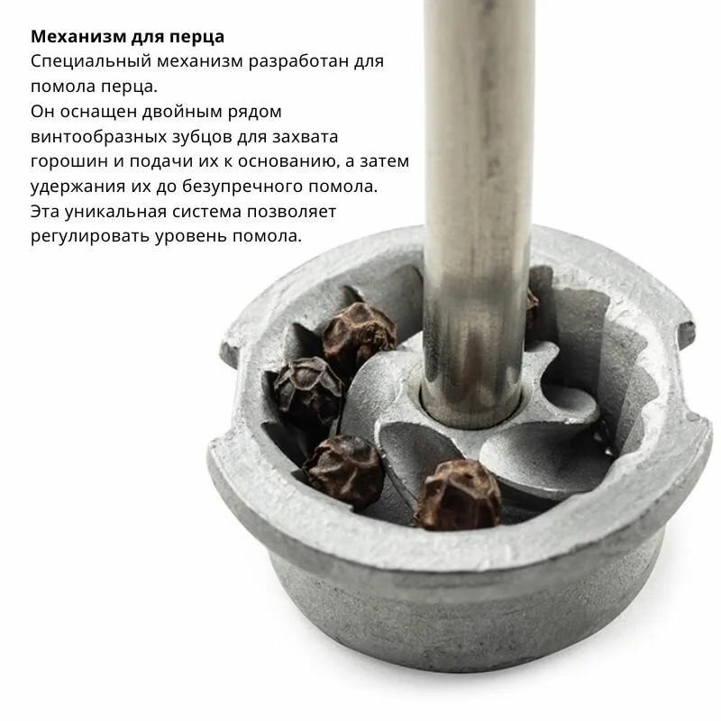 Стильный дизайн и практичность этой мельницы Paris u'Select делают ее неотъемлемым элементом вашего кухонного арсенала. Комбинация изысканного внешнего вида и надежной функциональности обеспечивает не только удобство в использовании, но и долговечность. Откройте для себя новые гастрономические возможности с мельницей для соли Paris от Peugeot. Позвольте себе насладиться исключительностью каждого блюда, управляя интенсивностью аромата и насыщенностью вкуса.