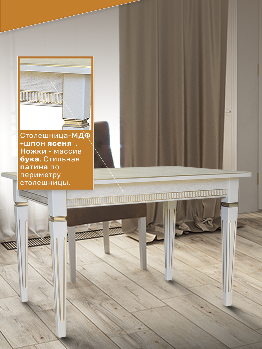 Обеденные столы серии «Васко» стилистически продолжают серию предметов интерьера этой коллекции и относятся к классическому стилю. Ножки изготовлены из массива бука – пожалуй, самой твердой породы дерева из тех, что принято использовать при производстве мебели в нашей стране. Столешницы выполнены из мдф покрытого шпоном натурального ясеня. Ясень – это дерево, отличающееся кроме прочности, одним из самых красивых рисунков текстуры. Этот стол украсит любой интерьер от классики до модерна.