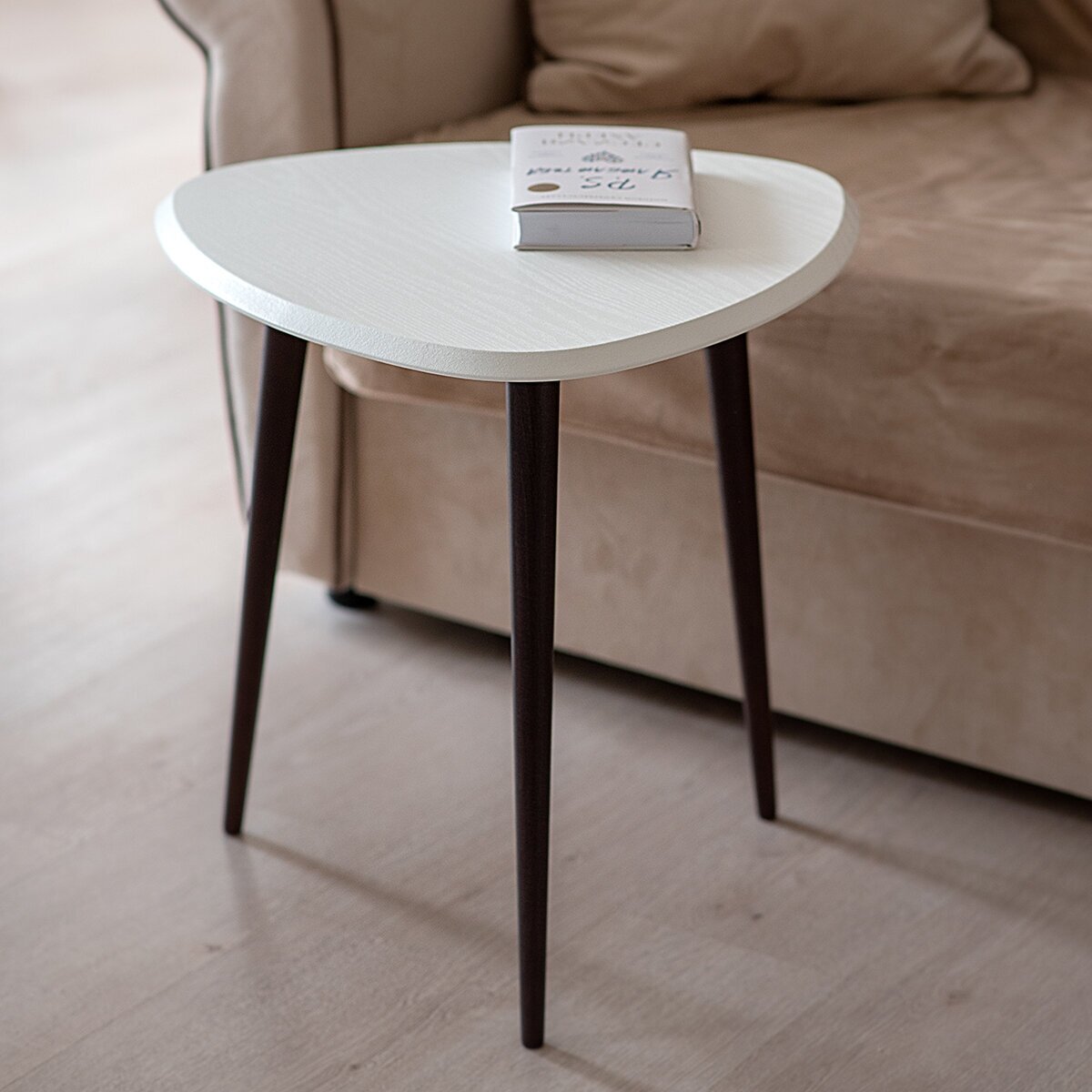 Столик для любителей всего нового. Мягкость скругленных углов треугольной столешницы не просто смотрится сверх современно, но и порождает внутреннее чувство безопасности; фаска по периметру столешницы – дань современным тенденциям и гигиене интерьера; элегантные точеные ножки из массива бука – классика стиля; современные цвета отделки – соответствие сегодняшнему дню. Столик смотрится настолько элегантно, что все ваши гости непременно обратят на него свое внимание и оценят ваш вкус. Если к этому добавить минимальный бюджет, простоту процесса приобретения, то побаловать себя такой вещицей и осовременить домашнюю обстановку становится очень просто.
