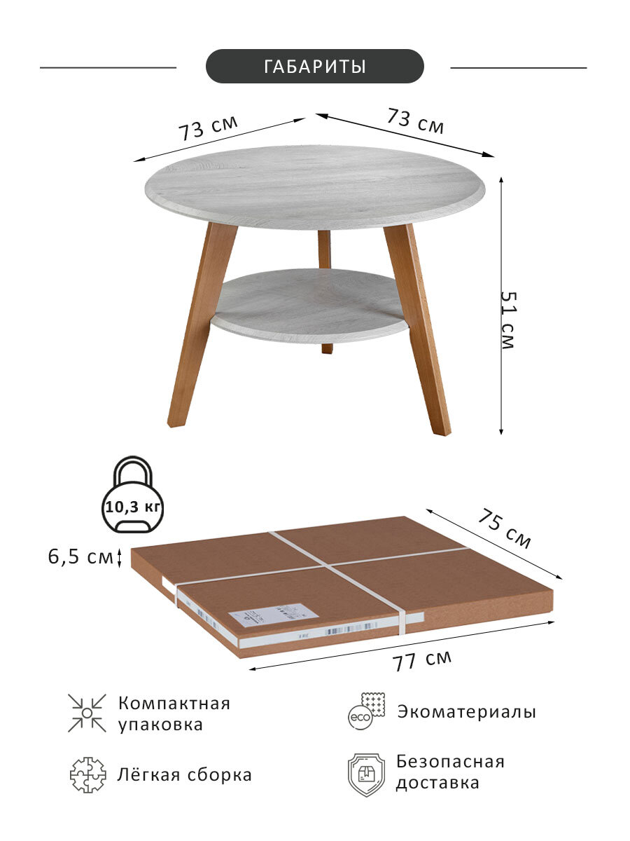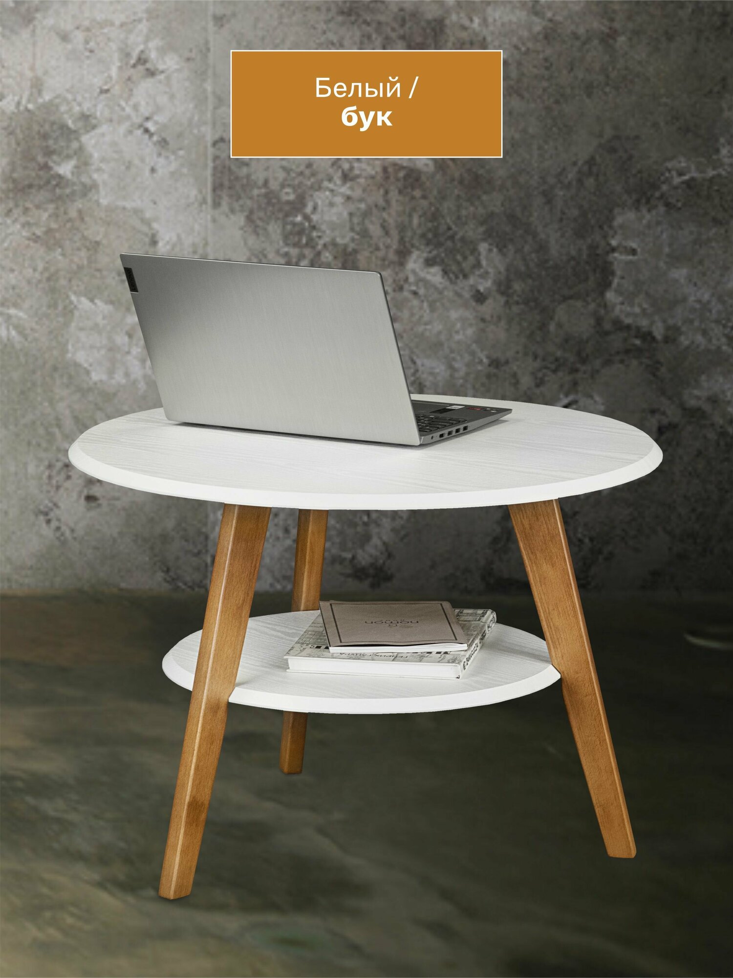Универсальный журнальный стол с круглой столешницей и полкой великолепно впишется в интерьеры общественных помещений. В рекреационных зонах, в зонах ожидания гостиниц, банков, торговых центров, сервисных учреждений всегда есть необходимость в дополнении обстановки элегантными и функциональными малыми формами. Данный столик – идеальный вариант для решения таких задач. Надежный, гигиеничный, функциональный, современный. Фаска по периметру столешницы и полки – дань современным тенденциям и гигиене интерьера, ножки из массива бука – классика стиля, продуманность конструкции - гарантия долгого срока службы. За столиком легко ухаживать, он легко собирается. Компактная упаковка и доступный бюджет превращают процесс приобретения в удовольствие.___ Журнальный столик с деревянной столешницей - не только украшение интерьера, но и весьма полезная в повседневной жизни вещь. Имея в своей обстановке журнальный столик, вы сможете хранить на нем тысячу ненужных вещей, сможете его быстро сервировать для нежданных гостей, редко, но сможете использовать его как стол письменный, кухонный, сервировочный, кофейный, или как туалетный столик. Стол журнальный - универсальная вещь. При выборе обратите внимание не только на габаритные размеры, но особенно на высоту. Если он будет стоять около дивана, то это особенно важно. Некрасиво, когда поверхность журнального стола выше сиденья, но и слишком низкие журнальные столики не всегда удобны - придется нагибаться. Сделайте свой выбор, а мы позаботимся о том, чтобы покупка стала для вас приятной.