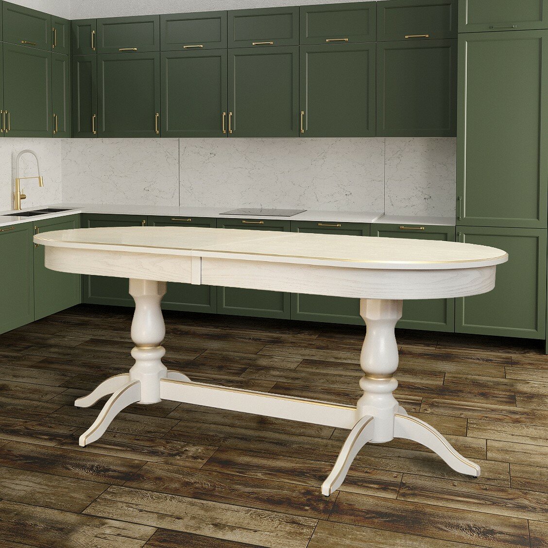 Стол обеденный раздвижной "Тарун 5" подходит и для уютной гостиной, и для просторной столовой, благодаря своему дизайну и надёжной конструкции. Овальную форму столешницы для обеденного стола можно назвать самой богатой с точки зрения визуального восприятия. Две массивные вертикальные опоры, как и ножки выполнены из натурального бука. Стол отлично будет смотреться в интерьерах оформленных в стиле классика.
