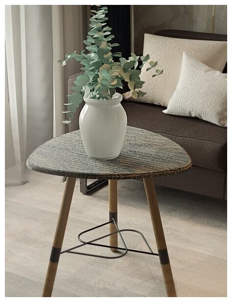 Авторский столик со столешницей в форме мягкого треугольника и оригинальной стальной полочкой-сеткой с ажурным переплетом. Такая полочка с одной стороны, позволяет использовать дополнительную поверхность для хранения стопки любимых журналов, с другой стороны – не позволяет захламлять её вездесущей мелочью. Компактные размеры столика делают его уместным в любой, даже самой небольшой комнате. Цвет и форма столика больше подходят к молодежному стилю обстановки жилья. Конструкция столика надежна, цена доступна, дизайн современен, процесс приобретения прост, — все делает этот предмет интерьера покупкой, о которой потом приятно вспоминать.