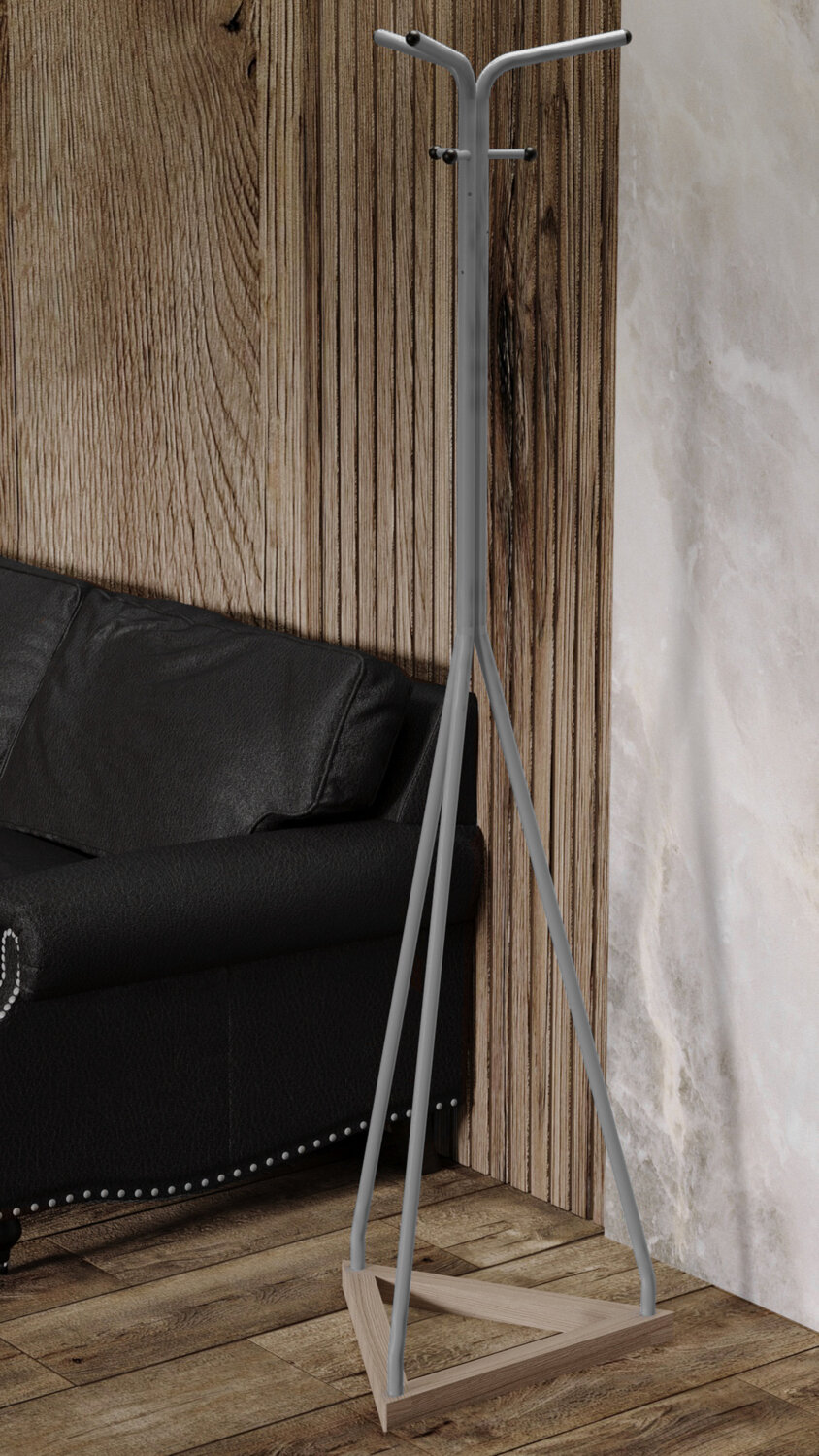 Таких цветов в отделке вешалок вы не встретите больше нигде. Бирюзовый, небесно-голубой, дымчато-розовый, цвет шимо, уже стандартные – металлик, черный, белый, серый. Раскрасьте свой интерьер новыми цветами, начните с самого доступного – с вешалки! Эта модель проста и надежна, позволит вам без труда разместить одежду полдюжины гостей даже в зимний период, при этом не напряжет ваш бюджет. Размах опор и их фиксация на треугольном основании, кроме того, расположение крючков строго над выносами ножек усиливают устойчивость вешалки даже в нагруженном состоянии. Вешалка легко собирается, удобна при транспортировке, долго прослужит не переставая радовать глаз.