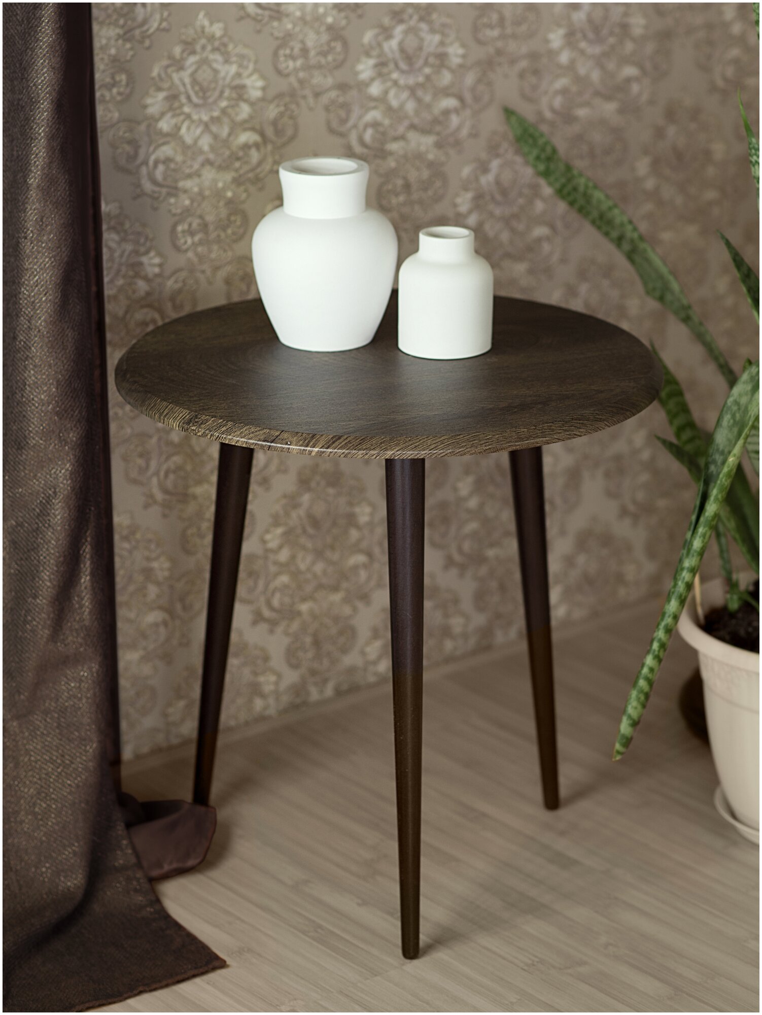 Классический небольшой столик с круглой столешницей, который можно использовать и как журнальный, и как кофейный, и как подставку, и даже как прикроватную тумбочку. От аналогов его отличают фаска по периметру столешницы – дань современным тенденциям и гигиене интерьера; элегантные точеные ножки из массива бука – классика стиля; современные цвета отделки – соответствие сегодняшнему дню. Кроме того, небольшой размер столика, абсолютно необременительный бюджет, легкость процесса приобретения делают его подарком для себя любимого, покупкой, про которую уверенно можно потом сказать – удачная.