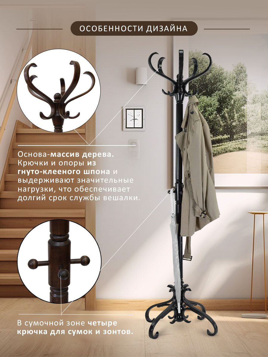 Вешалка В2Н – рациональный выбор для тех, кто предпочитает предметы интерьера из натуральных материалов в классическом стиле.
