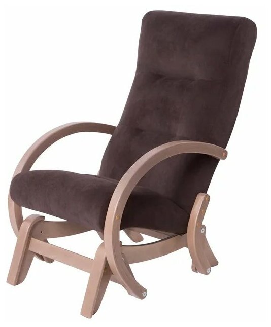 Такая мебель универсальна – в ней можно комфортно читать или дремать, проводить досуг. Кресло стоит на 4 ножках, а медленное качание осуществляется с помощью глайдера. Благодаря высокой спинке с горизонтальными утяжками и плотному пенополиуретану в качестве наполнителя осанка всегда будет ровной. Модель выдерживает нагрузку, не превышающую 100 кг.