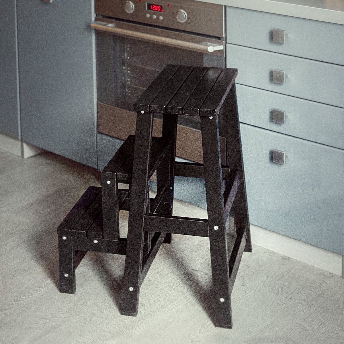 Высокий табурет (обратите внимание на высоту сиденья в характеристиках), одновременно и небольшая стремянка на три ступени. Вещь незаменимая в современных кухнях. Высоко расположенные вместительные навесные ящики часто оказываются недоступными для домохозяек именно из-за высоты. Даже обычного табурета иногда не хватает для того, чтобы дотянуться до нужных вещей на верхних полках. Стремянка в разобранном виде позволяет достать рукой до потолка в квартире человеку даже не самого большого роста. В собранном виде – дополнительное место для сидения и не бросается в глаза. Несколько вариантов цветов позволяют подобрать наиболее подходящий в вашу кухню. Каркас из натурального дерева делает стремянку легкой и прочной. Отличное приобретение, может служить подарком хозяйке. МАТЕРИАЛЫ: массив УПАКОВКА: 62*31,5*46см, 1 место ВЕС: 7,2 кг Цвет: бук, венге, лак, орех, снег