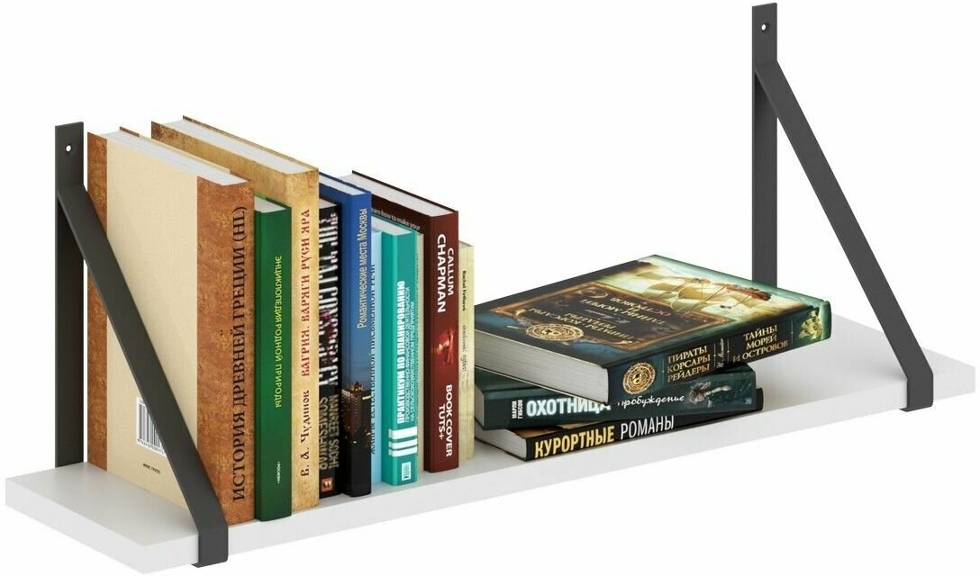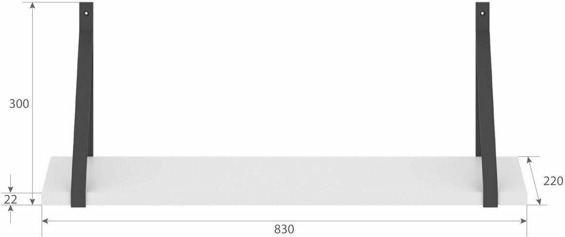 Универсальная полка с полкодержателями COFFEE для офисного или домашнего использования, размер – 830х300х220 мм, цвет - Белый. Полка выполнена из ЛДСП 38 мм, что придает ей долговечность и надежность. Оснащена прочными металлическими креплениями. Все торцы основных элементов надежно защищены кромкой ПВХ.