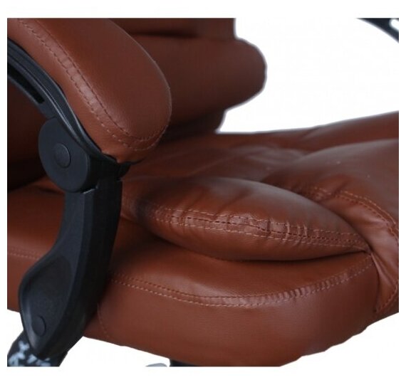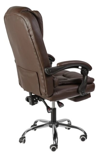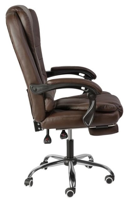 Ну очень мягкое офисное кресло MF-3001 в коричневом цвете! Оно выполнено из хрома, имеет удобную высокую мягкую спинку, обивку из экокожи, дополнительную поддержку поясницы. Высокая спинка из плотного поролона позволяют с комфортном работать весь день за компьютером. Строгий дизайн отлично подойдет в современный офисный интерьер, домашний кабинет. Механизм качания синхромеханизм, хромированная крестовина выдерживает нагрузку до 120 кг. Подставка для ног дает возможность расслабиться и вытянуть ноги в конце рабочего дня.Характеристики:1. Крестовина: хром;2. Подлокотники: пластик;3. Высота спинки: 70 см;5. Высота сидения: 51-58 см.;6. Нагрузка: 120 кг.;7. Механизм: топ-ган;8. Вес: 16,5 кг.;9. Особенности: подставка для ног;10. Страна производства: Китай.
