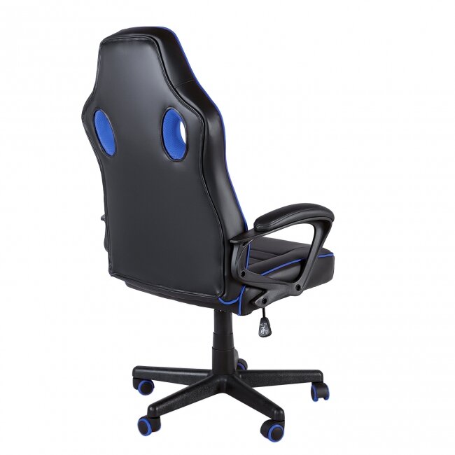 Бюджетное черно-синее компьютерное кресло MF-3041 с основанием из прочного пластика черного цвета, имеет удобную мягкую спинку с отверстиями для вентиляции спины, обивку из экокожи, мягкий подголовник, горизонтальную декоративную отстрочку. За этим кресло можно комфортно работать за компьютером весь день. Лаконичный дизайн отлично подойдет в офисный и домашний интерьеры. Механизм качания топ-ган, высокая спинка, набивка из поролона высокой плотности. Основание выдерживает нагрузку до 120 кг. Характеристики:1. Основание: пластик;2. Подлокотники: пластик с мягкими накладками;3. Высота спинки: 71 см;5. Высота сидения: 42-50 см.;6. Нагрузка: 120 кг.;7. Механизм: топ-ган;8. Вес: 15,7 кг.;9. Страна производства: Китай.