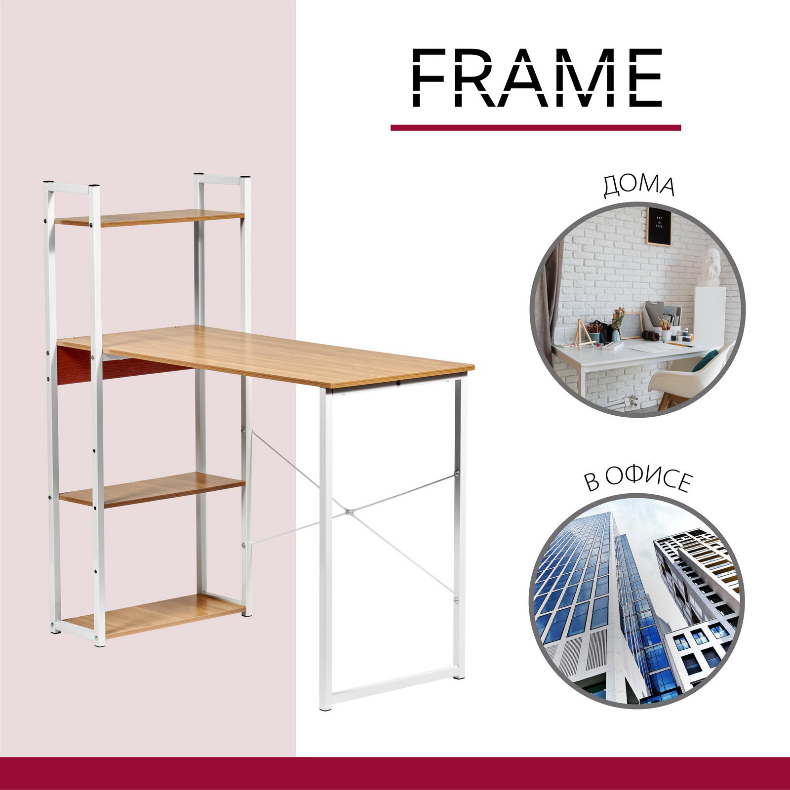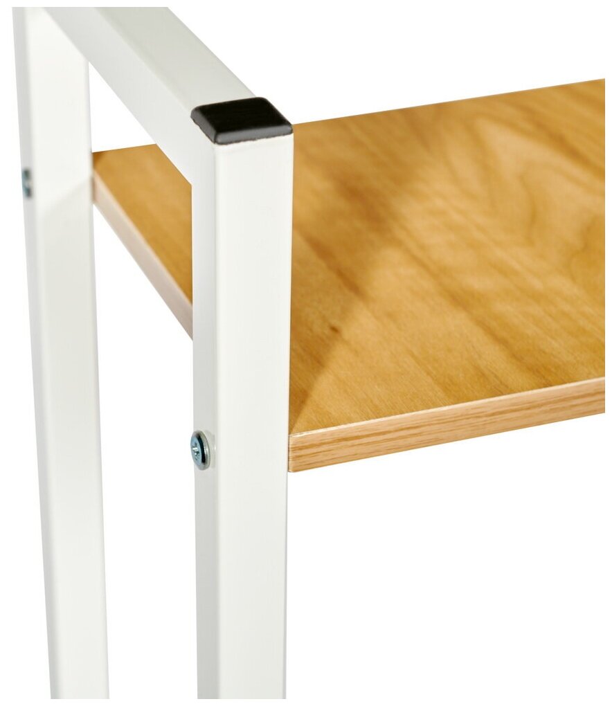 Эргономичный стол письменный c высокой открытой стеллажной системой Frame позволит организовать функциональное рабочее место на небольшой площади. Подойдет для дома, офиса, дачи, салона красоты и гаража. На широкой столешнице из мдф и дополнительных полках можно разместить необходимые вещи для учебы, работы, занятий хобби и творчеством. Размер поверхности компактного компьютерного стола 100х45 см, на ней легко поместится ноутбук, документы, книги, учебники, канцелярия. На полочках удобно хранить нужные мелочи, аксессуары, предметы декора, а также технику: системный блок, принтер, сканер. Стол школьный универсален, предназначен не только для детей школьников, но и для геймеров подростков и взрослых. Простой лаконичный стол ученика в стиле лофт в светлом и темном дереве хорошо впишется в интерьер дома: кабинета, гостиной, детской, балкона, лоджии. Прочный и надежный металлокаркас выполнен в двух цветах, черном и белом, выдерживает нагрузку до 50 кг. Правильная высота учебного деревянного столика сохранит осанку, закругленные углы столешницы защитят руки от травматизма. Металлические ножки снабжены подпятниками для защиты пола от повреждений и царапин. В комплекте к офисному столу для пк идет весь необходимый крепеж и подробная инструкция по сборке мебели.